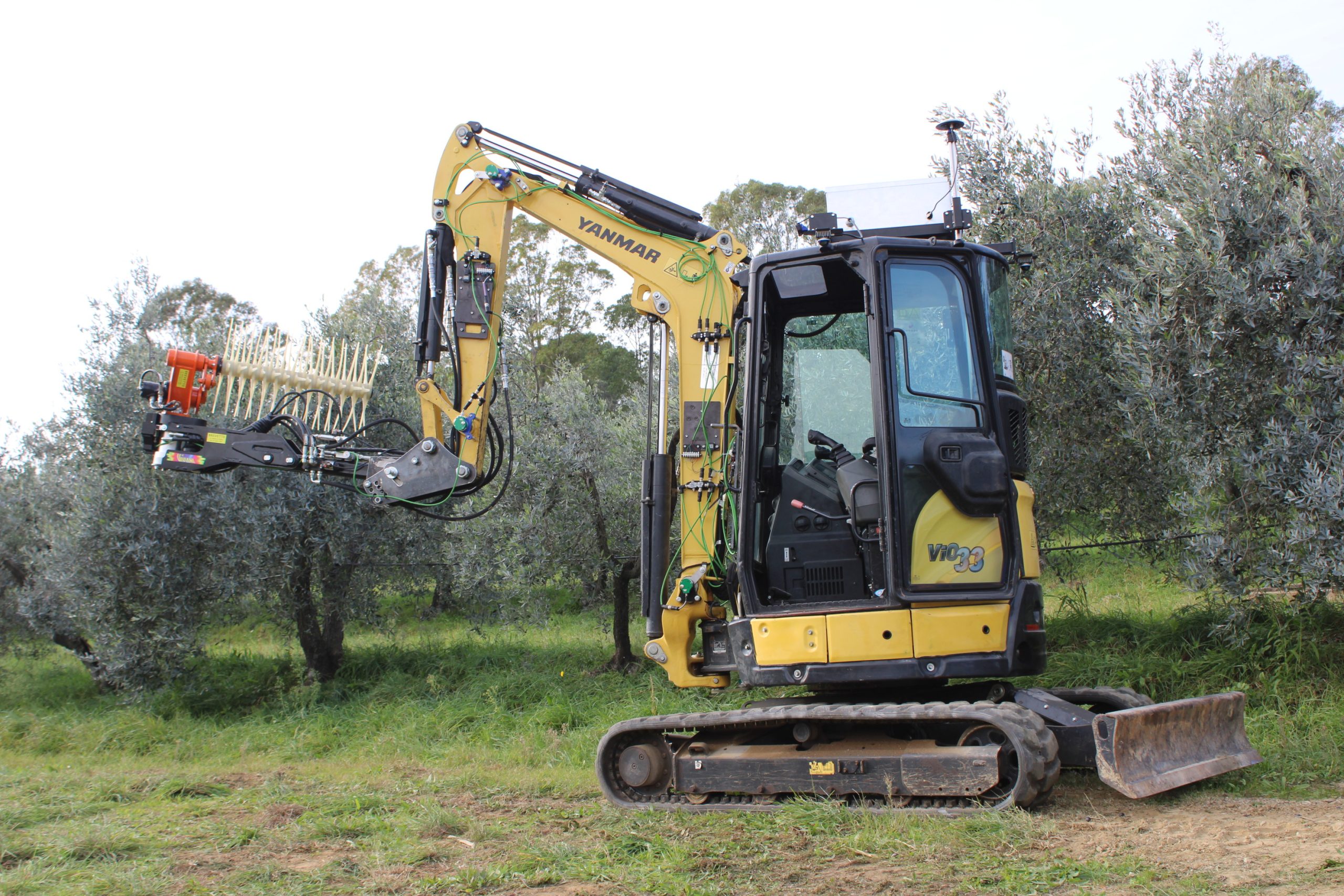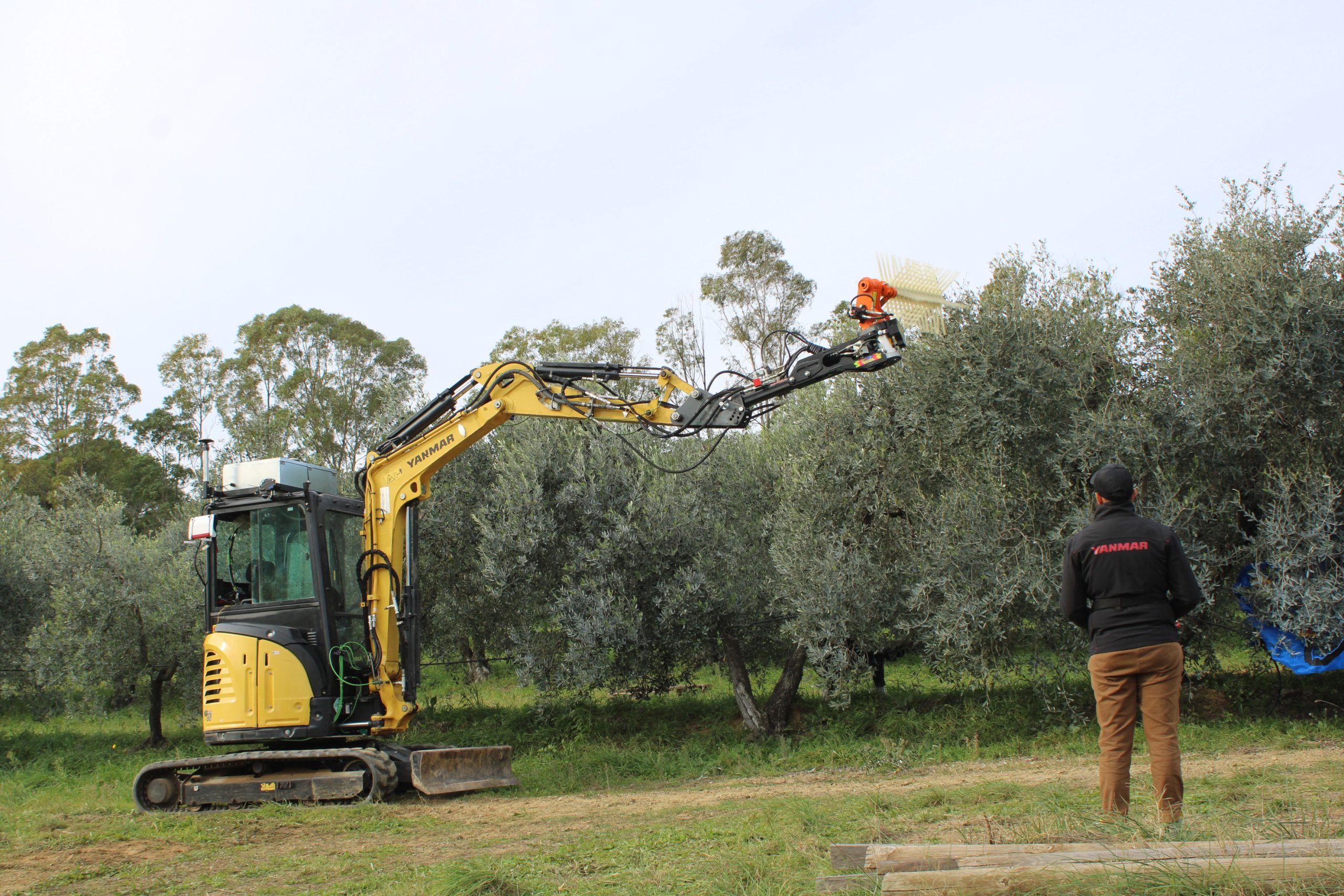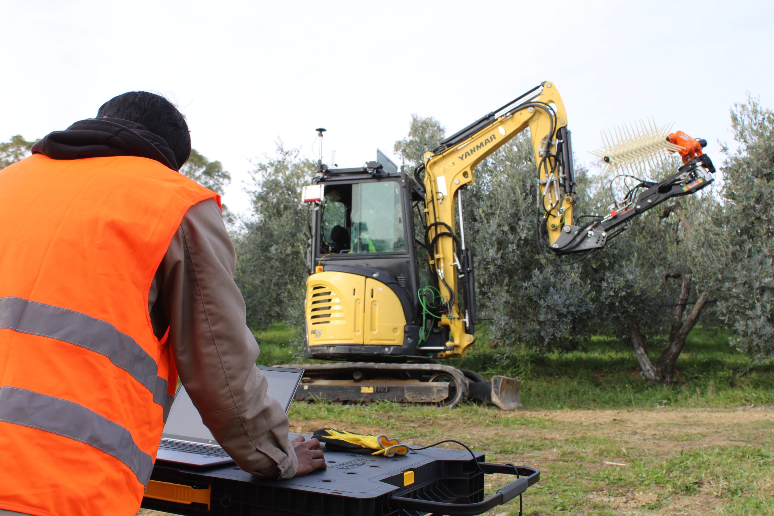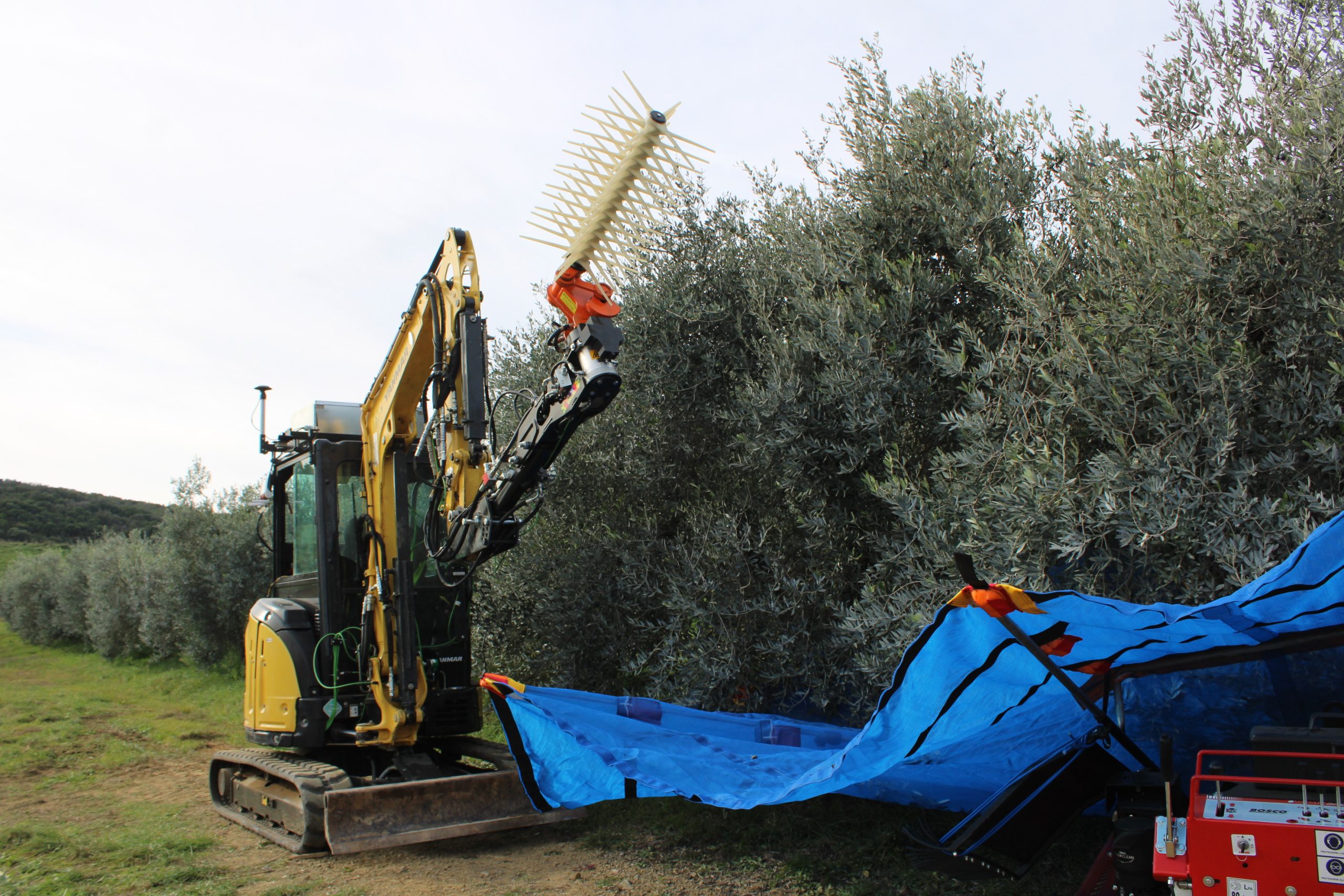 Il raccoglitore autonomo - hanno spiegato i ricercatori della Yanmar di Firenze - utilizza il braccio di un piccolo escavatore, una macchina spesso in uso nelle aziende agricole, come un vero e proprio braccio robotico, ed è dotato di uno scuotitore commerciale opportunamente sensorizzato e di un ombrello rovesciato per la raccolta, componenti che sono integrati attraverso software, tool, telecamere, sensori per consentire la raccolta senza danneggiare i frutti. La mappatura digitale della pianta, una informazione essenziale per consentire al robot olivicoltore di identificare le caratteristiche dell’olivo circostante, è realizzata attraverso camere e telerilevamento rielaborate dall’intelligenza artificiale mentre particolari e specifici software sono stati sviluppati appositamente per ricreare le condizioni spaziali circostanti. Il robot si trova attualmente ancora in fase di test e rappresenta una prima pratica applicazione della combo robotica ed intelligenza artificiale nel settore dell’olivicoltura tradizionale.