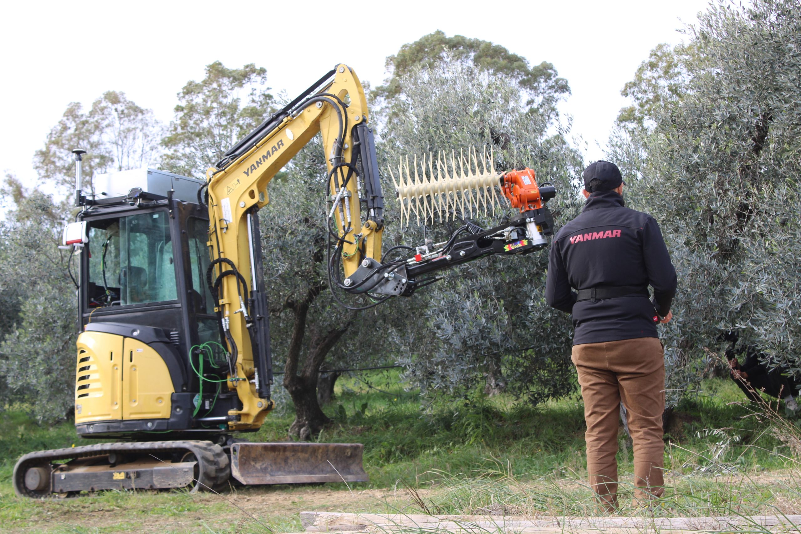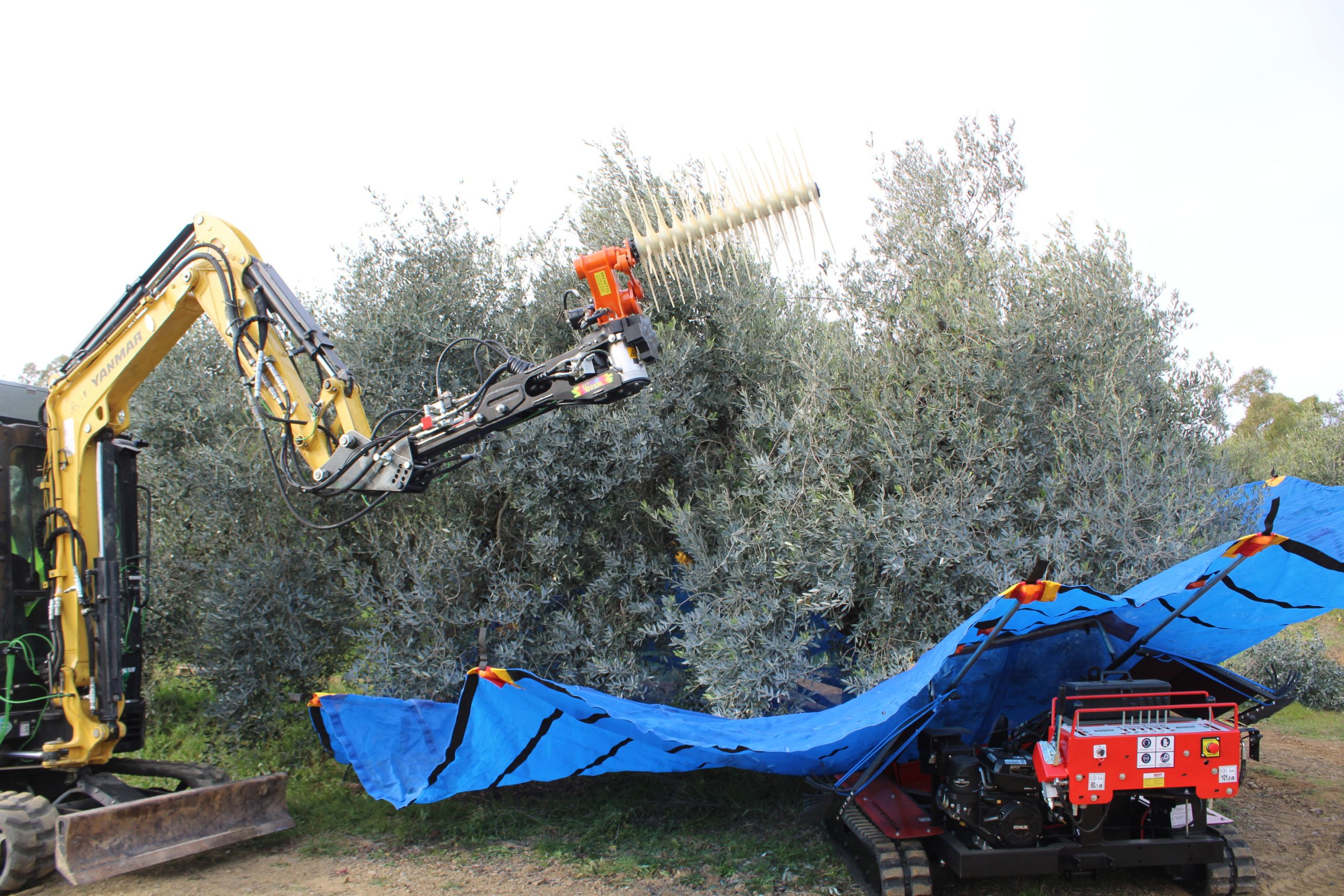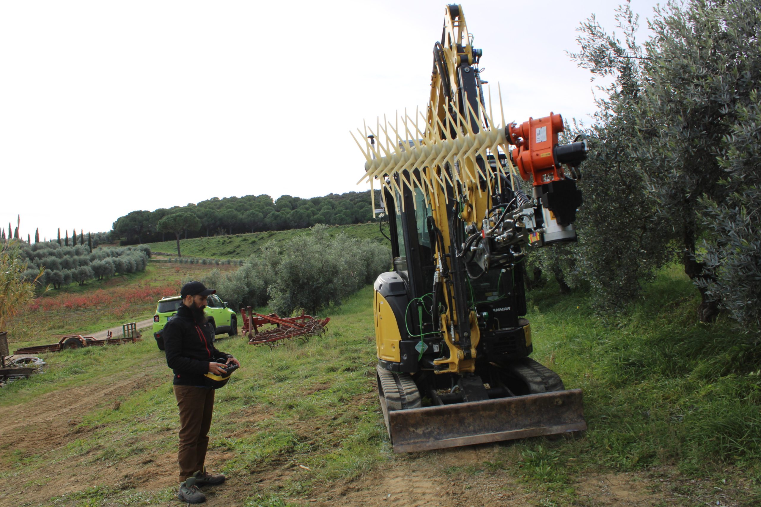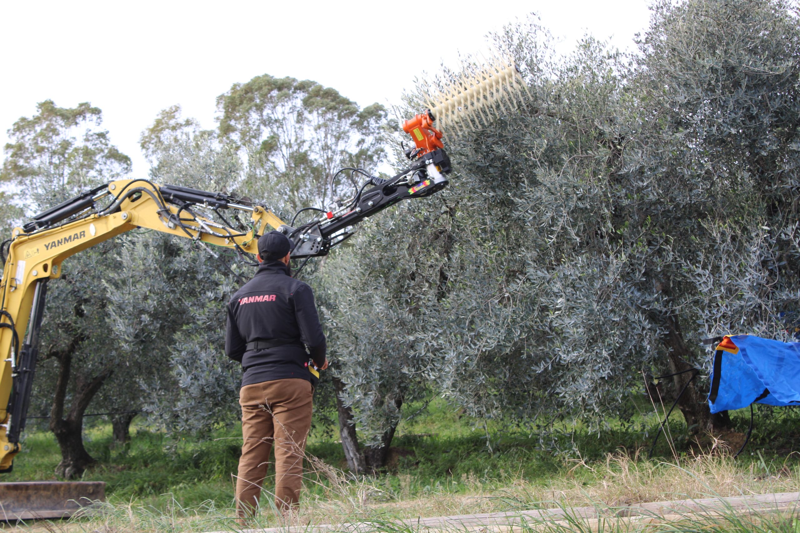 Il raccoglitore autonomo - hanno spiegato i ricercatori della Yanmar di Firenze - utilizza il braccio di un piccolo escavatore, una macchina spesso in uso nelle aziende agricole, come un vero e proprio braccio robotico, ed è dotato di uno scuotitore commerciale opportunamente sensorizzato e di un ombrello rovesciato per la raccolta, componenti che sono integrati attraverso software, tool, telecamere, sensori per consentire la raccolta senza danneggiare i frutti. La mappatura digitale della pianta, una informazione essenziale per consentire al robot olivicoltore di identificare le caratteristiche dell’olivo circostante, è realizzata attraverso camere e telerilevamento rielaborate dall’intelligenza artificiale mentre particolari e specifici software sono stati sviluppati appositamente per ricreare le condizioni spaziali circostanti. Il robot si trova attualmente ancora in fase di test e rappresenta una prima pratica applicazione della combo robotica ed intelligenza artificiale nel settore dell’olivicoltura tradizionale.