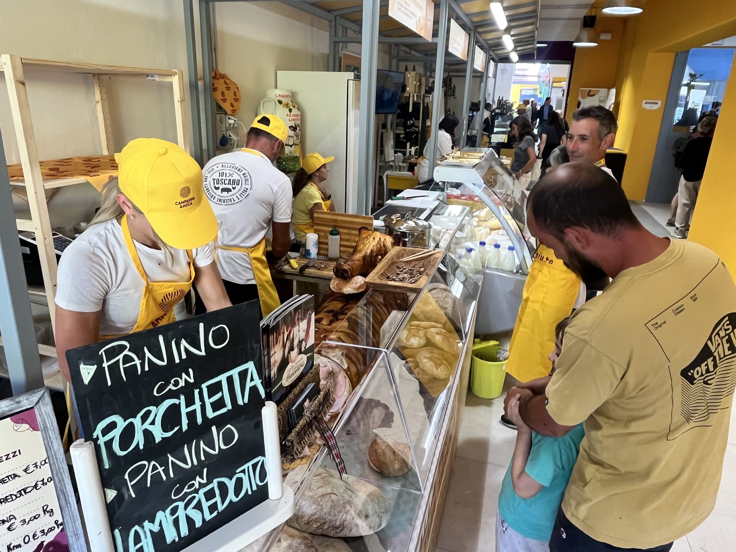 Oltre mille metri quadrati dedicati alla filiera corta e alle eccellenze raccolte, coltivate, allevate e pescate in Toscana ma anche alla vera cucina contadina e allo street food con un’area dedicata. Una vera e propria bottega con cucina come un tempo ne era piena la città; un hub da cui far partire e diffondere la cultura del cibo sano, equo, giusto e responsabile per noi, per il nostro pianeta, per il nostro futuro. Un megafono per rilanciare le storiche battaglie sulla trasparenza, dell’etichettatura obbligatoria, dell’abolizione del codice doganale e della reciprocità per valorizzare il lavoro delle imprese agricole e tutelare la salute dei consumatori partendo
