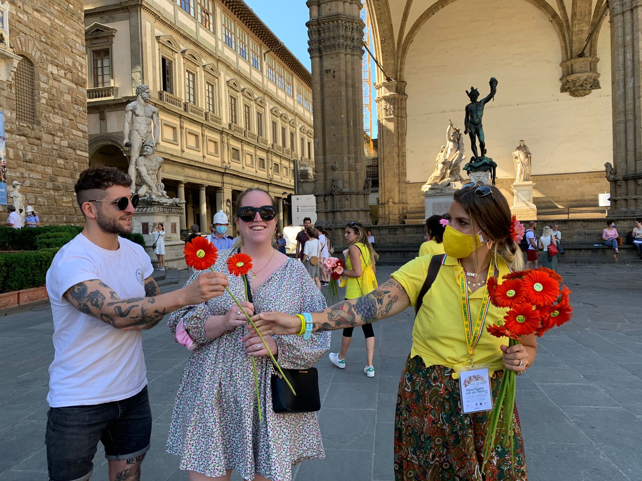 Iniziativa anche a Firenze: “Ripartiamo con un fiore” con girasoli e gerbere donati a turisti e fiorentini