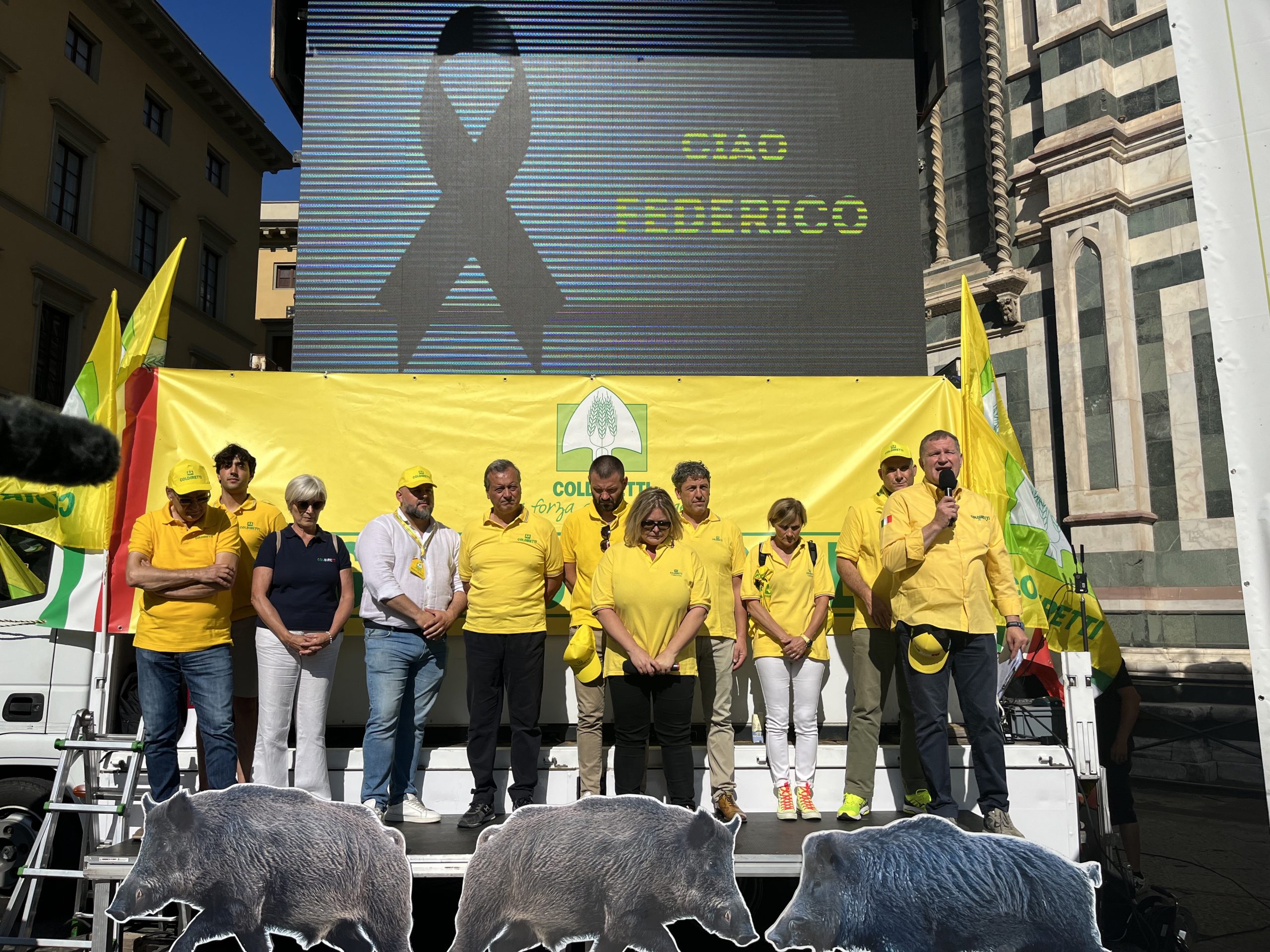 Giani e Saccardi in piazza. In piazza, a parlare con gli agricoltori, sono arrivati il Governatore Eugenio Giani e l’assessora regionale all’agroalimentare, Stefania Saccardi a cui è stato consegnata una sagoma di cinghiale a grandezza naturale. Il Governatore e l’assessora hanno assicurato impegno e risposte portando nella prossima giunta i provvedimenti di emergenza che Coldiretti ha chiesto come il piano straordinario di contenimento di tutta la fauna selvatica a partire dai cinghiali per i quali le misure ad oggi prese hanno necessità di implementazione e di una applicazione puntuale.