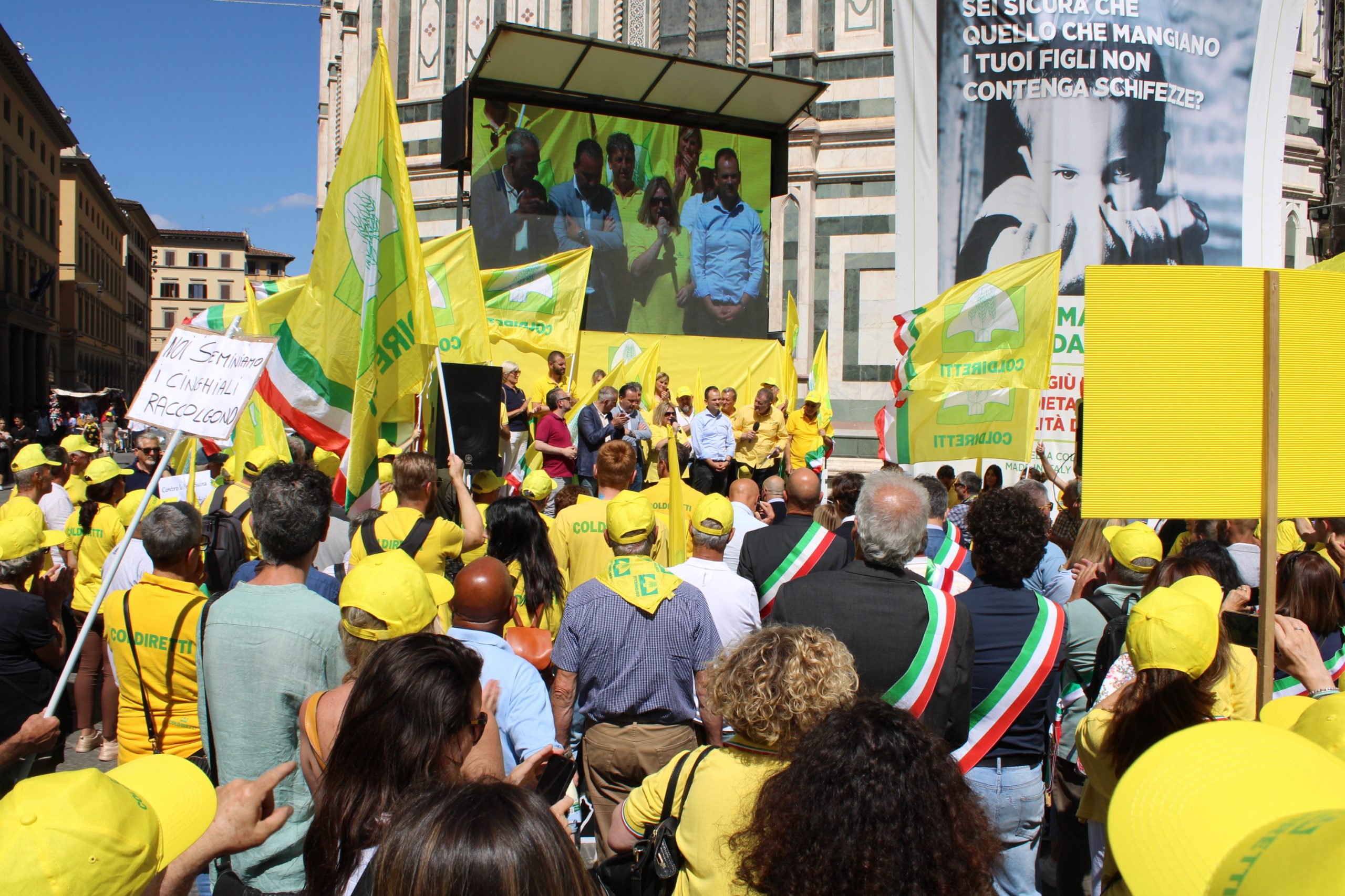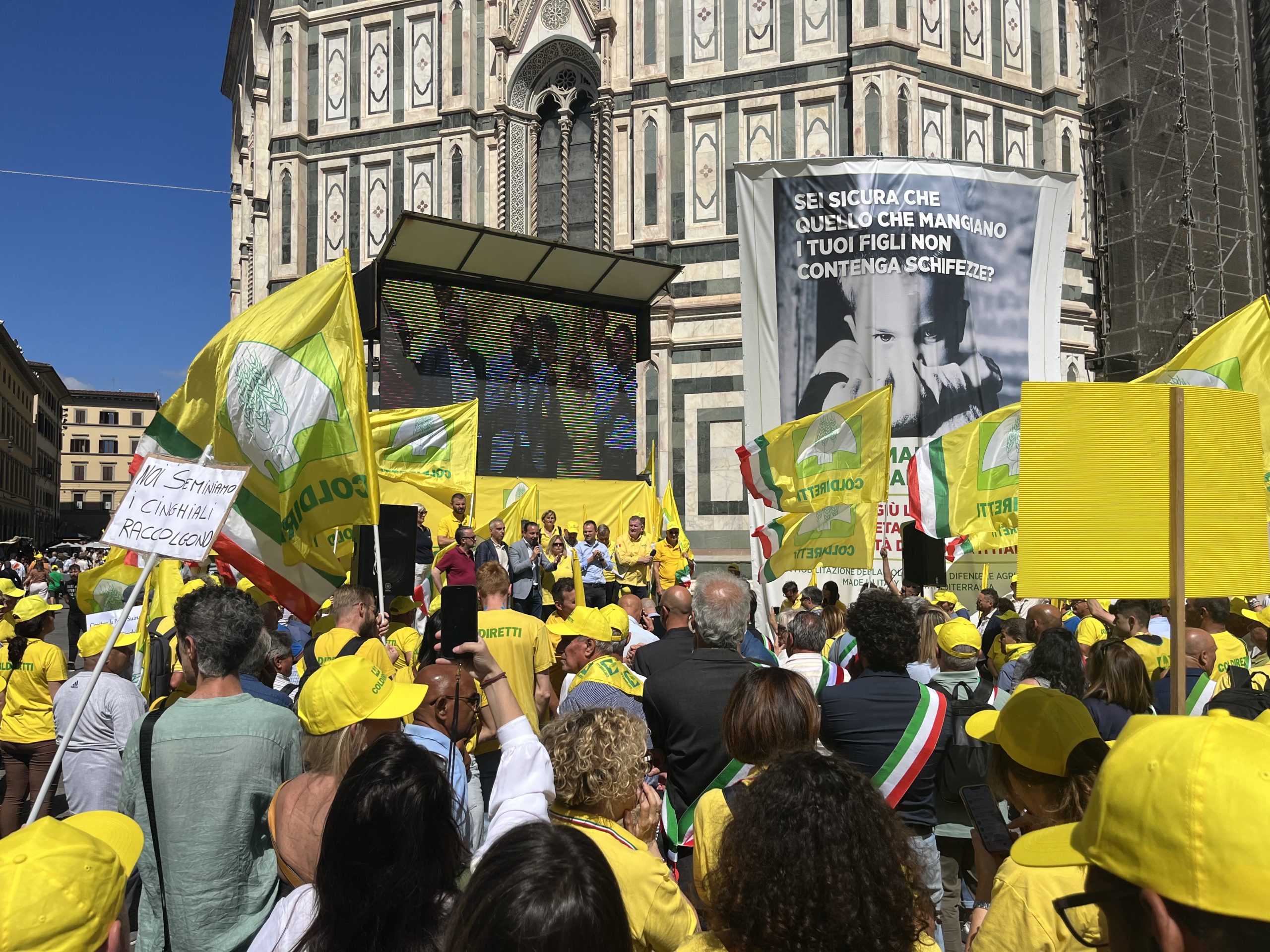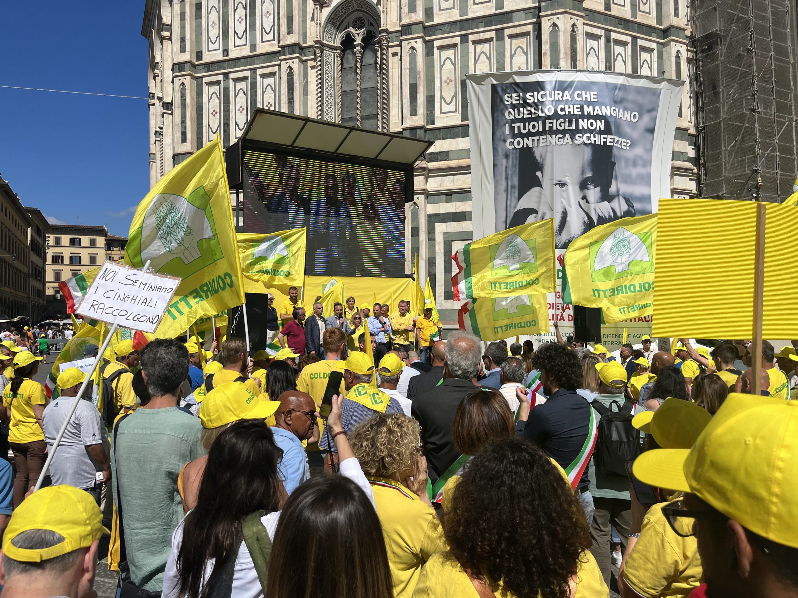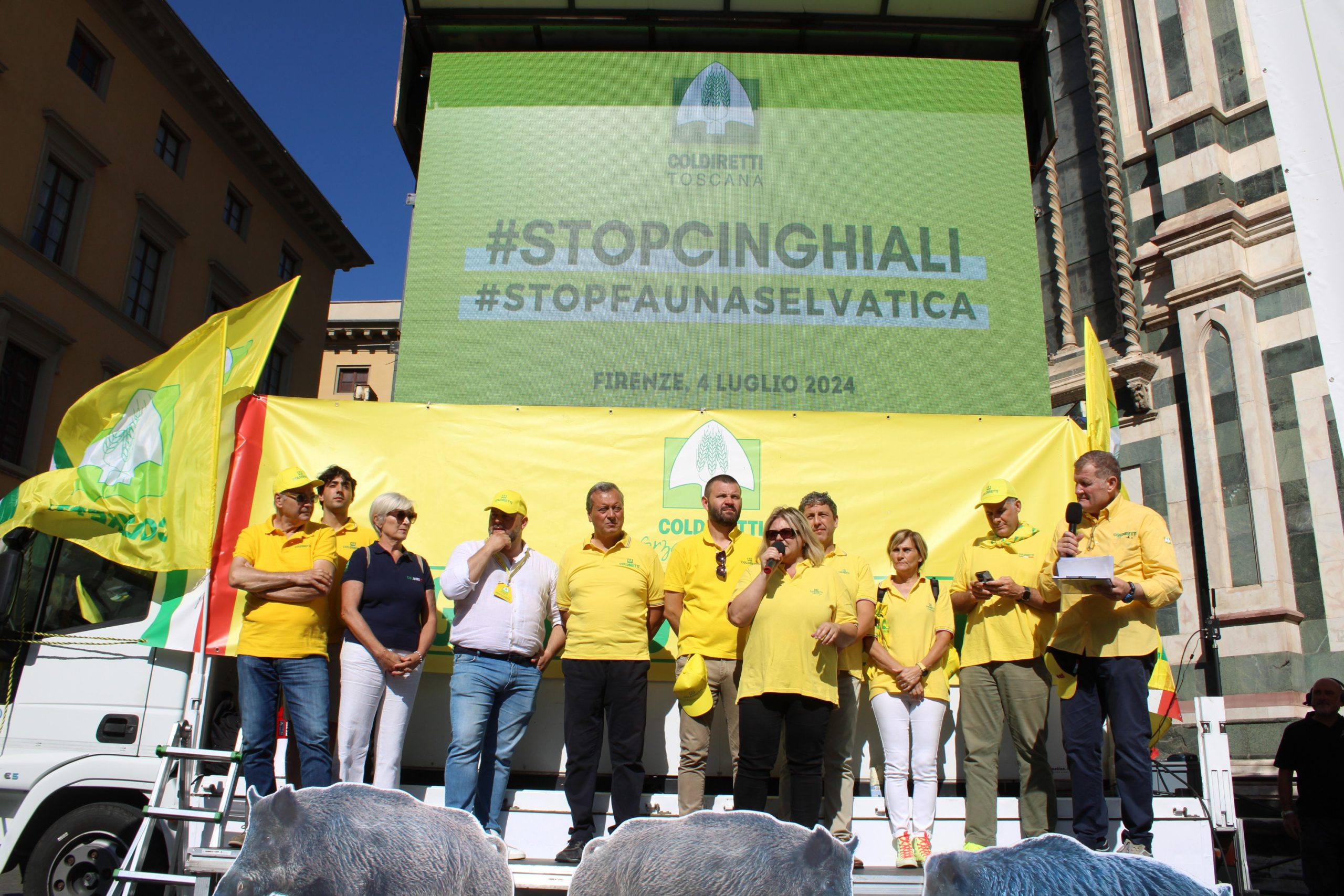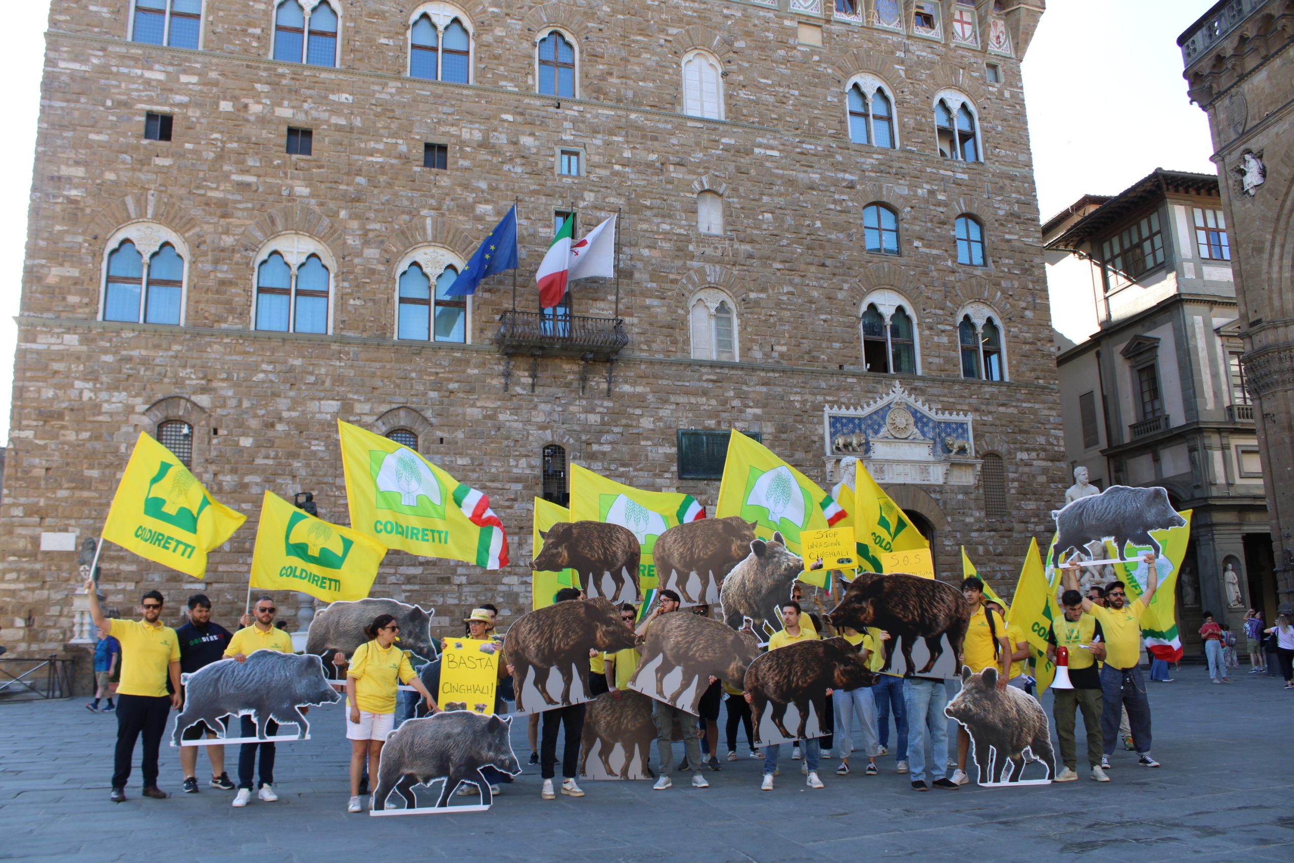 Sono scesi di nuovo piazza anche per loro, per i cittadini, i 4 mila mila tra agricoltori ed allevatori di Coldiretti Toscana che di fronte a Palazzo Strozzi Sacrati, sede della Regione Toscana, davanti allo sguardo curioso e preoccupato di turisti e passanti, hanno invocato l’attuazione del Piano straordinario per la gestione ed il contenimento della fauna selvatica. In piazza hanno portato insieme a slogan, cartelli, fischietti, la loro rabbia e la loro frustrazione per una situazione che al momento non ha trovato alcuna soluzione. A sostenerli oltre cinquanta Sindaci con la fascia tricolore ed amministratori locali che vivono la quotidiana difficoltà di gestione della fauna selvatica. “Gli sforzi normativi compiuti fino a qui per riportare in equilibrio la fauna selvatica, in particolare i cinghiali che sono colpevoli dell’80% dei danni alle produzioni agricole, non sono sufficienti. Bisogna fare di più e farlo subito. – ha tuonato la presidente di Coldiretti Toscana, Letizia Cesani - Questo è il motivo per cui noi di Coldiretti su quel piano straordinario chiediamo dei miglioramenti per renderlo concreto ed efficace prevedendo la delega agli abbattimenti anche per famigliari e dipendenti delle imprese agricole e la riduzione dei tempi delle autorizzazione per gli interventi di prelievo da parte della Polizia Provinciale. La presenza incontrollata dei cinghiali, e più in generale della fauna selvatica, ha generato un grandissimo malcontento di cui la politica si deve fare carico. Il sistema dei risarcimenti non raffigura la vera realtà dei territori poiché gli agricoltori non denunciano neanche più tanto è lo sconforto e l’impotenza di fronte ad indennizzi inadeguati, aggravi burocratici e tempistiche inaccettabili. Occorre dunque intervenire sull’esistente con convinzione e dare un piano straordinario anche per tutte le altre specie, oltre del cinghiale, che nei fatti sono la concausa di molti dei disagi che oggi viviamo”.
