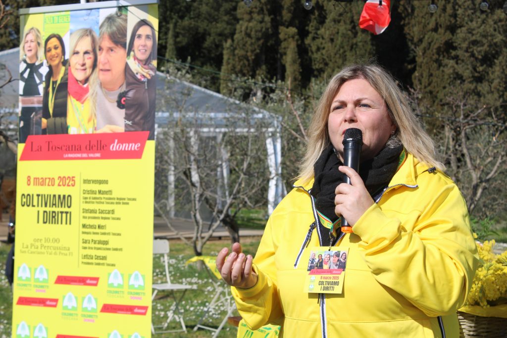 L’ideatrice della Toscana delle Donne richiama il titolo dell’iniziativa “Coltiviamo le donne”: “Slogan migliore non c'era per questa giornata, proprio Coltiviamo i diritti. Quello che vuole fare la Toscana delle donne con questo progetto, tutto l'anno, lavorare sulla sensibilizzazione all'importanza e alla affermazione dei diritti della donna, che è anche un modo per contrastare la violenza di genere, un modo per crescere come società tutta, quindi non solo per le donne, ma per tutta la società. Dobbiamo lottare per queste donne, per tutte le donne che si affacciano al mondo dell'agricoltura e garantire gli stessi diritti e parità”. La Presidente regionale di Coldiretti, Letizia Cesani ha invece ricordato come “le donne rappresentano la dinamicità dell’agricoltura” e sono la “fonte del rinnovamento” portando “un forte ricambio generazionale, all’insegna della multifunzionalità, con tante aziende con meno di 35 anni”. La capo organizzazione di Coldiretti nazionale, Sara Paraluppi ha evidenziato come “Coldiretti in questi anni abbia fatto scelte sulla base del merito e non di genere, da qui la presenza di tante donne, non solo a capo delle imprese agricole, ma a livello dirigenziale e direzionale in posizione di primo piano”.