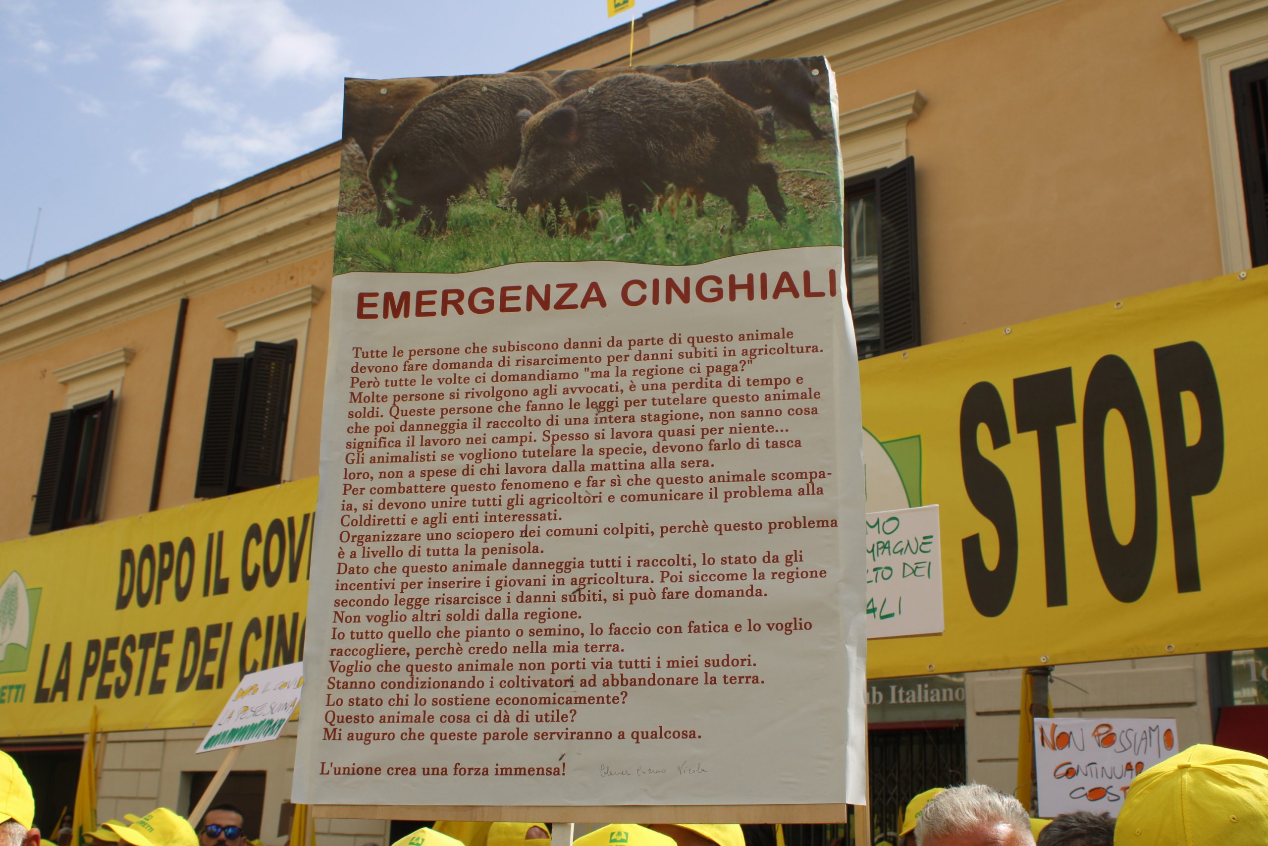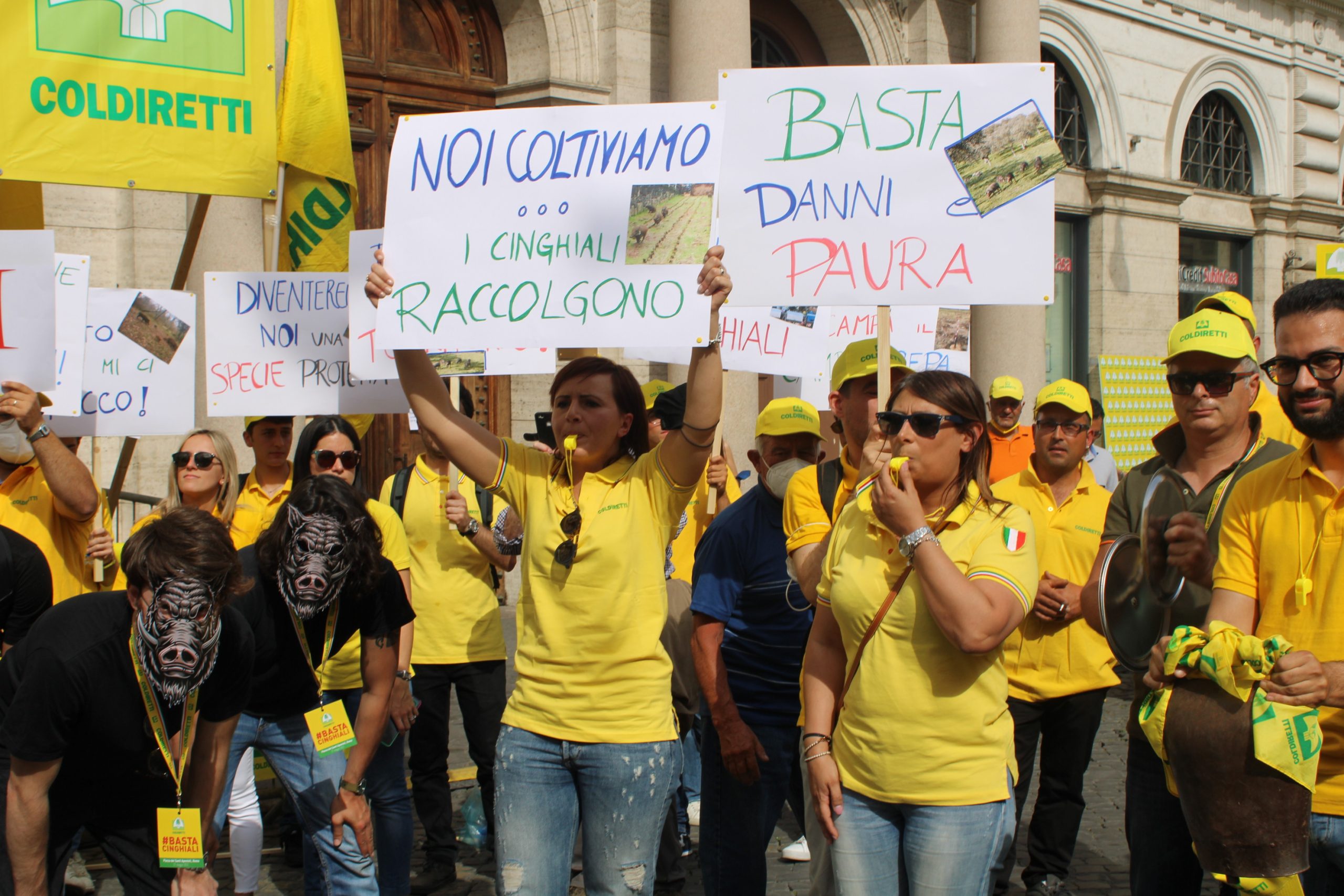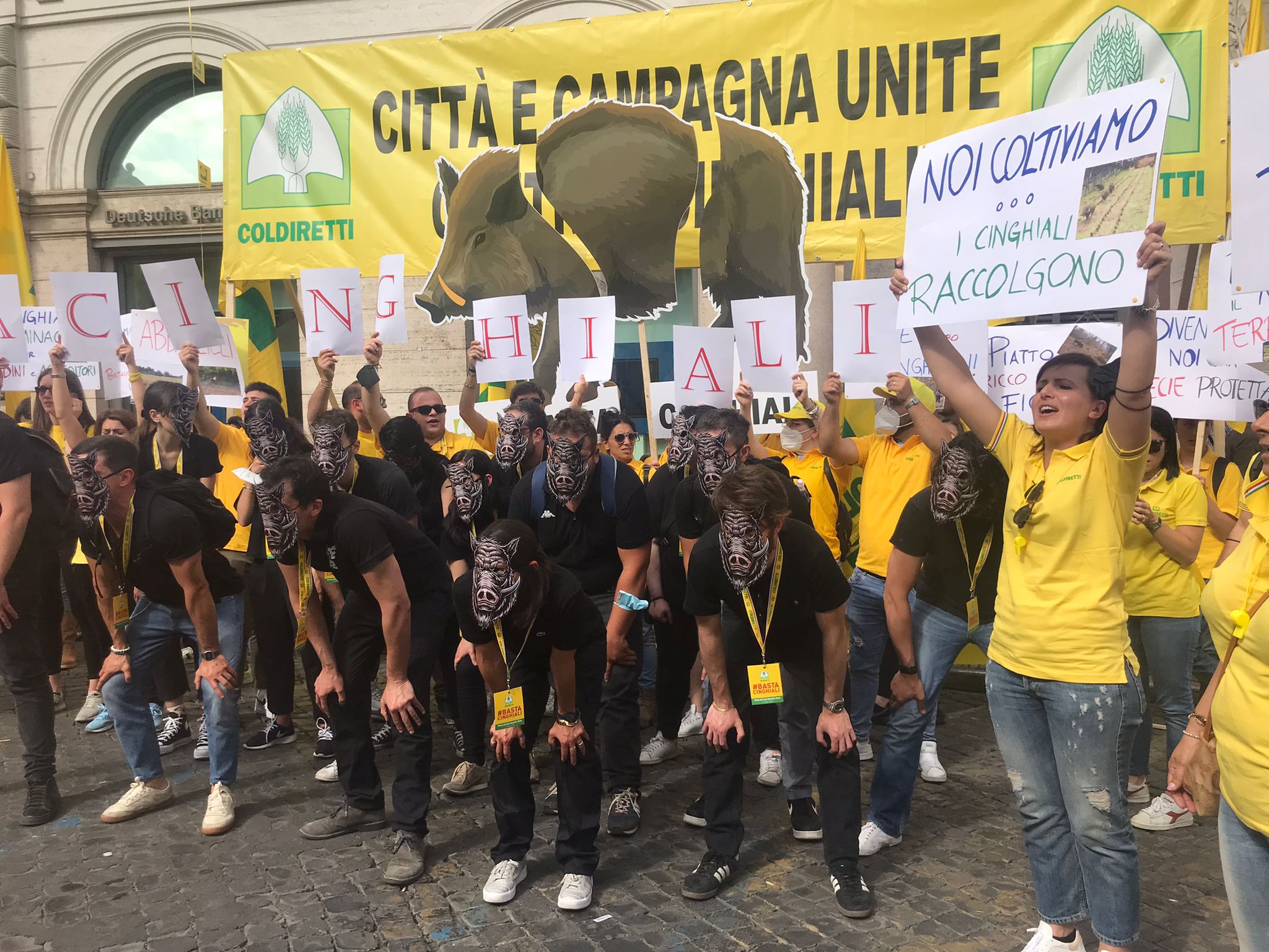 “Subito abbattimenti”: Coldiretti torna ad invocare un piano straordinario per ridurre la popolazione dei cinghiali che, dopo l’emergenza Covid che ha ridotto la presenza dell’uomo all’aperto, sono diventati 500 mila. Il 15% in più. Cinghiali che, rappresentano una un pericolo per la sicurezza delle persone in campagna e città con i branchi che si spingono fin dentro i centri urbani, fra macchine in sosta, carrozzine con bambini e anziani che vanno a fare la spesa. E’ quanto afferma Coldiretti Toscana in occasione del blitz degli agricoltori, cittadini e istituzioni in piazza SS. Apostoli a Roma a cui ha partecipato una numerosa delegazione di imprese toscane partite da tutte le province della regione. In Piazza per la protesta, per narrare una situazione fuori controllo, ci sono le sagome di un branco di cinghiali a grandezza naturale per dimostrare concretamente cosa significa trovarseli di fronte in strada, nei campi o davanti alla propria abitazione ed il salone dei prodotti tipici Made in Italy che rischiano di scomparire a causa della peste suina che colpisce i maiali ma non l’uomo. “E’ il problema principale nelle nostre campagne che va affrontato una volta per tutte. – ha ribadito il Presidente di Coldiretti Toscana, Fabrizio Filippi - La presenza della fauna selvatica favorisce l’abbandono delle nostre campagne, crea danni incalcolabili alle produzioni e minacciano la sicurezza. Chiediamo un piano di eradicazione serio per toglierlo dalle aree dove non devono stare. Usiamo l’esercito se necessario per riportare la situazione alla normalità”.