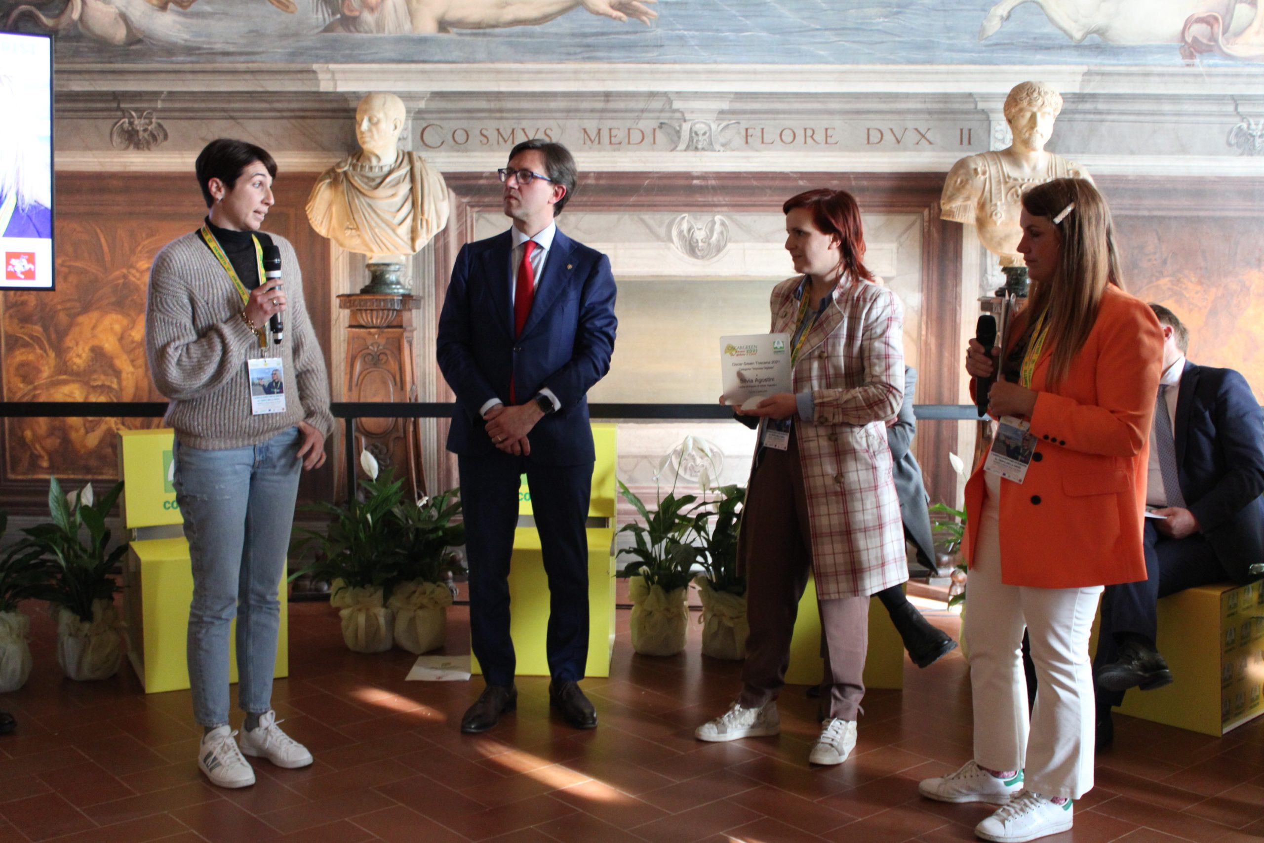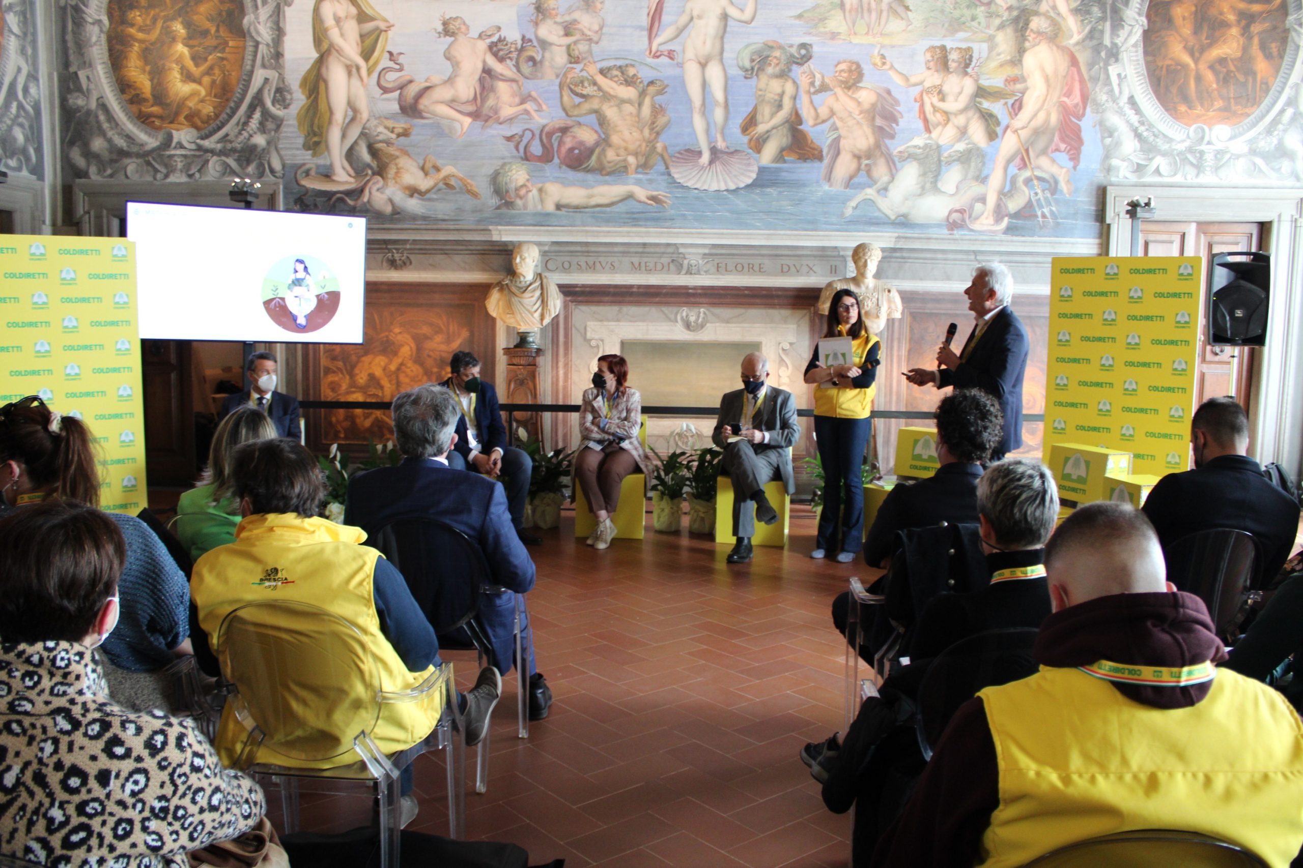 Sono le cinque esperienze da Oscar Green premiate da Giovani Impresa Coldiretti in occasione dell’evento “L’agroalimentare in Europa al tempo della crisi” che si è tenuto venerdì 8 aprile nella suggestiva cornice della Sala degli Elementi di Palazzo Vecchio a Firenze. All’iniziativa, alla presenza del giovani imprenditori arrivati da tutta la Toscana, hanno partecipato in qualità di relatori Roberto Nocentini (Presidente Coldiretti Firenze Prato), Cecilia Del Re (Assessore Comune di Firenze), Leonardo Bassilichi (Presidente della Camera di Commercio di Firenze), Michele Falce (Responsabile Area Produzione e Servizi Agricoli Novamont), Gianluca Lelli (CEO Consorzi Agrari d’Italia), Giuseppe Salvini (Segretario Generale Camera di Commercio di Firenze), Stefano Leporati (Segretario Nazionale Coldiretti Giovani Impresa), Francesca Lombardi (Delegata Regionale Giovani Impresa Coldiretti), Felice Adinolfi (Direttore Centro Studi Divulga), Eugenio Giani (Presidente Regione Toscana), Dario Nardella (Sindaco del Comune di Firenze e Presidente di Eurocities), Stefania Saccardi (vice presidente della giunta regionale della Toscana), Angelo Frascarelli (Presidente Ismea), Veronica Barbati (Delegata Nazionale Giovani Impresa Coldiretti) e Fabrizio Filippi (Presidente Coldiretti Toscana). Coordina i lavori Angelo Corsetti (Direttore Coldiretti Toscana).