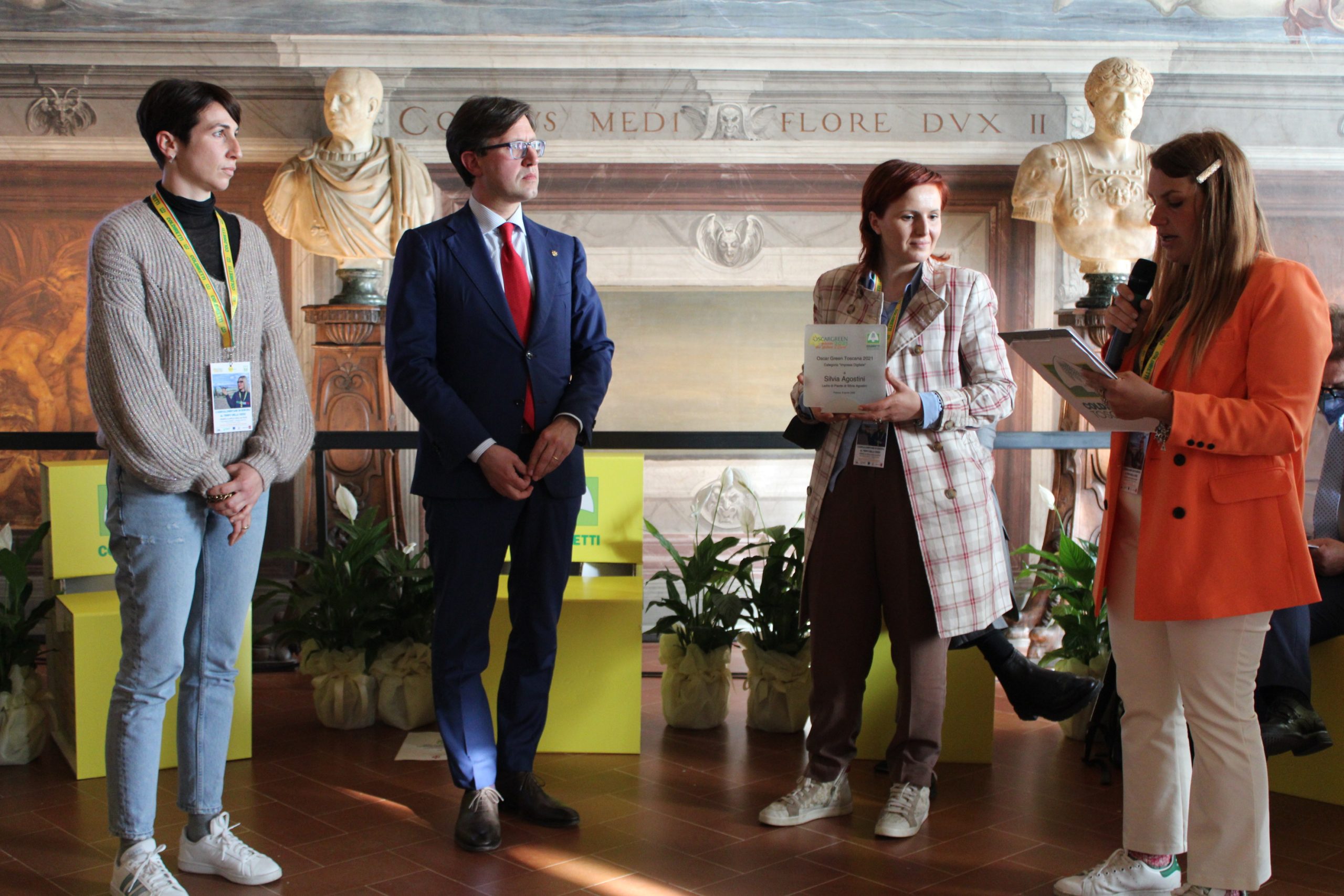Nella categoria “Sostenibilità e transizione ecologica” è stata premiata l’azienda agricola “La Lappola” di Arezzo. Dopo la Laurea Magistrale in Ecotossicologia e sostenibilità ambientale, Marco Batini ha rilevato l’azienda della nonna, inattiva da tempo, innovandola. Contestualmente è diventato guida ambientale escursionistica per ampliare l’offerta dei servizi e si è dedicato al recupero e al riuso di ogni singolo oggetto, nel segno del riciclo e della riduzione degli sprechi. In questo progetto si evidenzia la capacità del giovane imprenditore di aver trasformato  un’azienda tradizionale in una realtà innovativa che presta attenzione all’economia circolare, al risparmio di energia e alla tutela dell’ambiente ma anche all’intrattenimento e all’educazione attraverso il simpatico progetto della Lappocam, attivato durante la pandemia, che da a tutti la possibilità di vivere in diretta restando a casa, con il solo semplice ausilio di un telefonino, momenti di campagna ed agricoltura. La sua azienda è un esempio di transizione ecologica ed originalità.