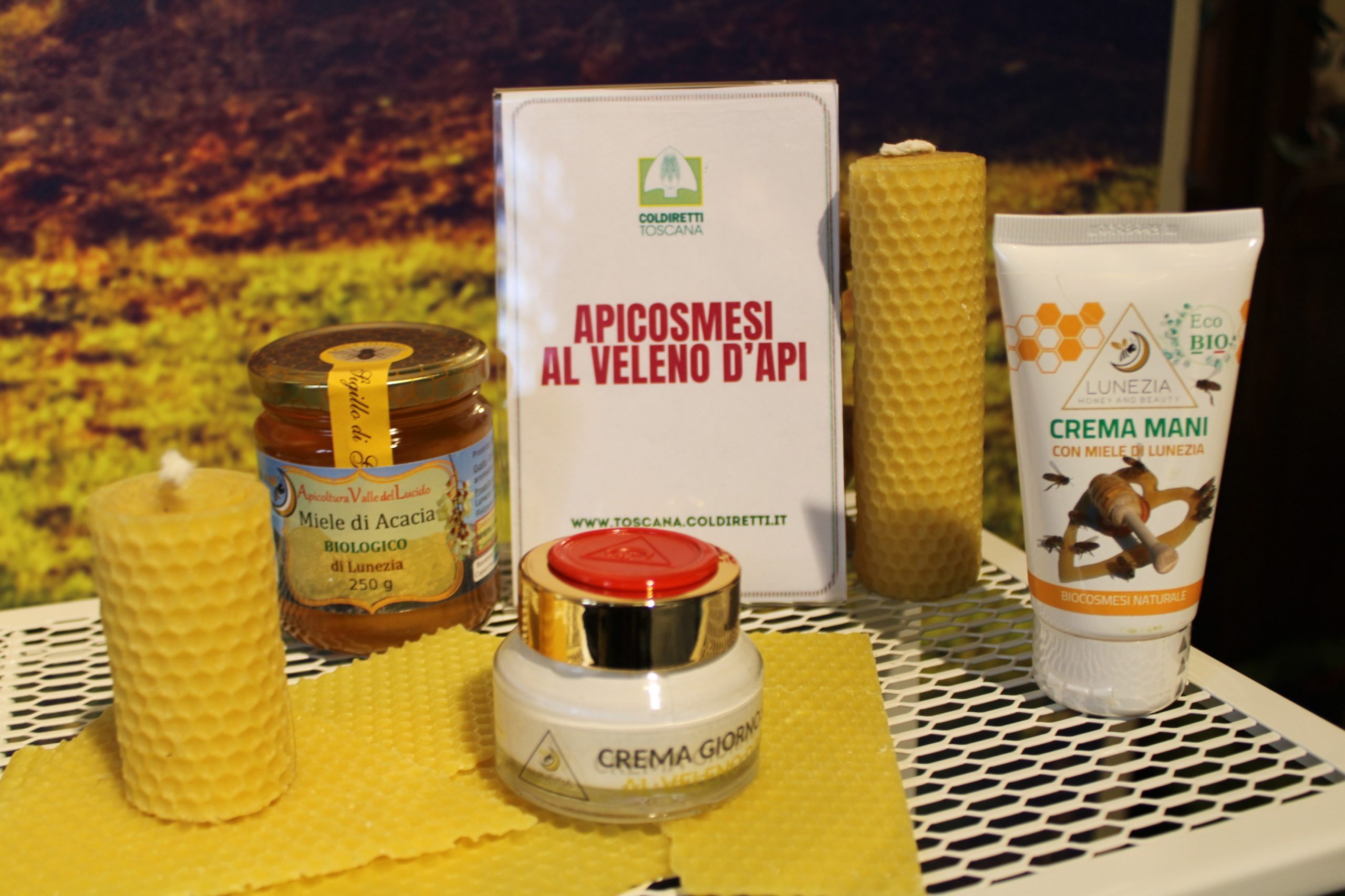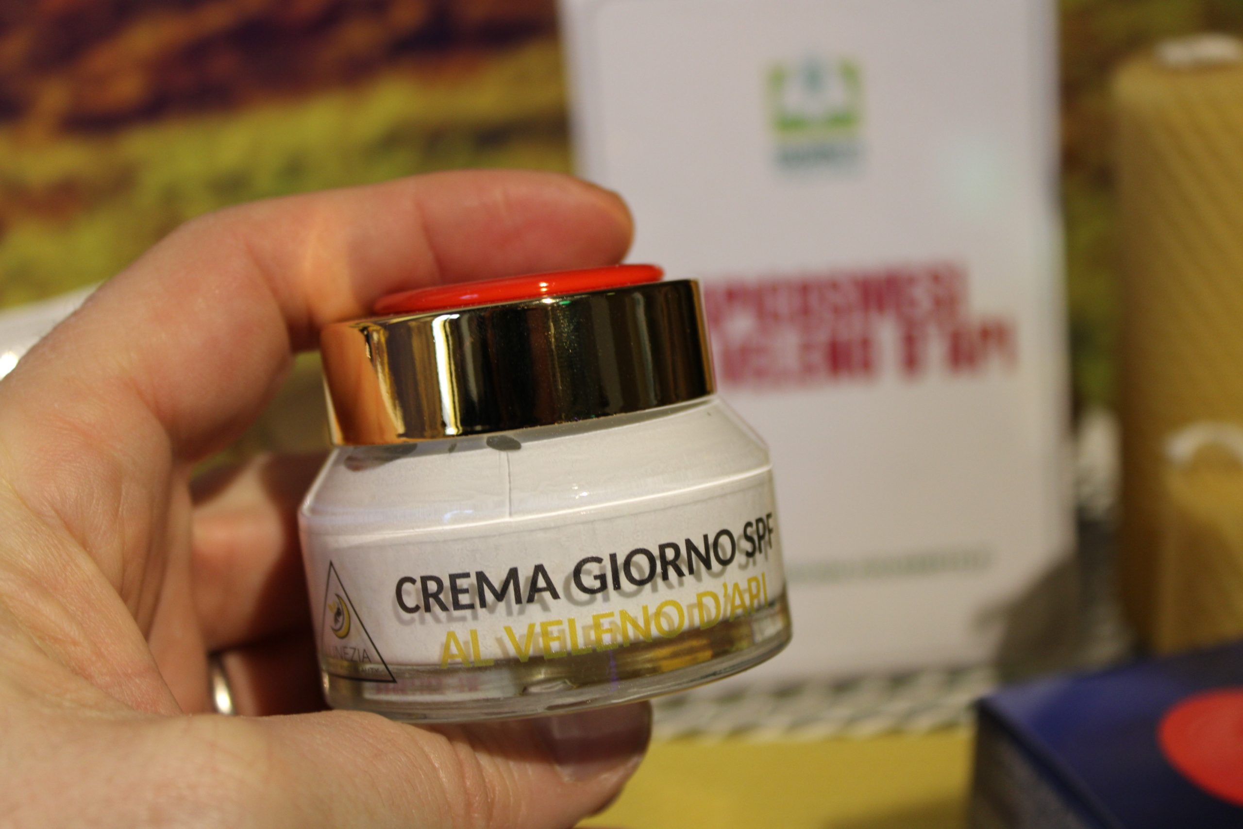 Le creme al veleno d’api. Il veleno d’api contro l’invecchiamento della pelle e contrastare l’acne. Nasce in Lunigiana, a Fivizzano (Massa Carrara), dalla ricerca di Lunezia Miele, una piccola azienda agricola che produce miele, il primo kit anti-age composto da creme giorno e notte i cui principi attivi sono prodotti direttamente in azienda tramite un processo di estrazione indolore e non invasivo. Il Veleno d’api, conosciuto anche come diamante dell’alveare, è un lifting naturale e purissimo che contiene due sostanze preziose come l’apamina (tossina che distende le rughe) e la miellitina, un mix di amminoacidi che stimola i fibroblasti a produrre collagene ed elastina). L’azienda, che si è specializzata anche nei profumi di nicchia, produce una vasta gamma di prodotti tra cui creme viso e mani al miele e stick labbra alla cera d’api.