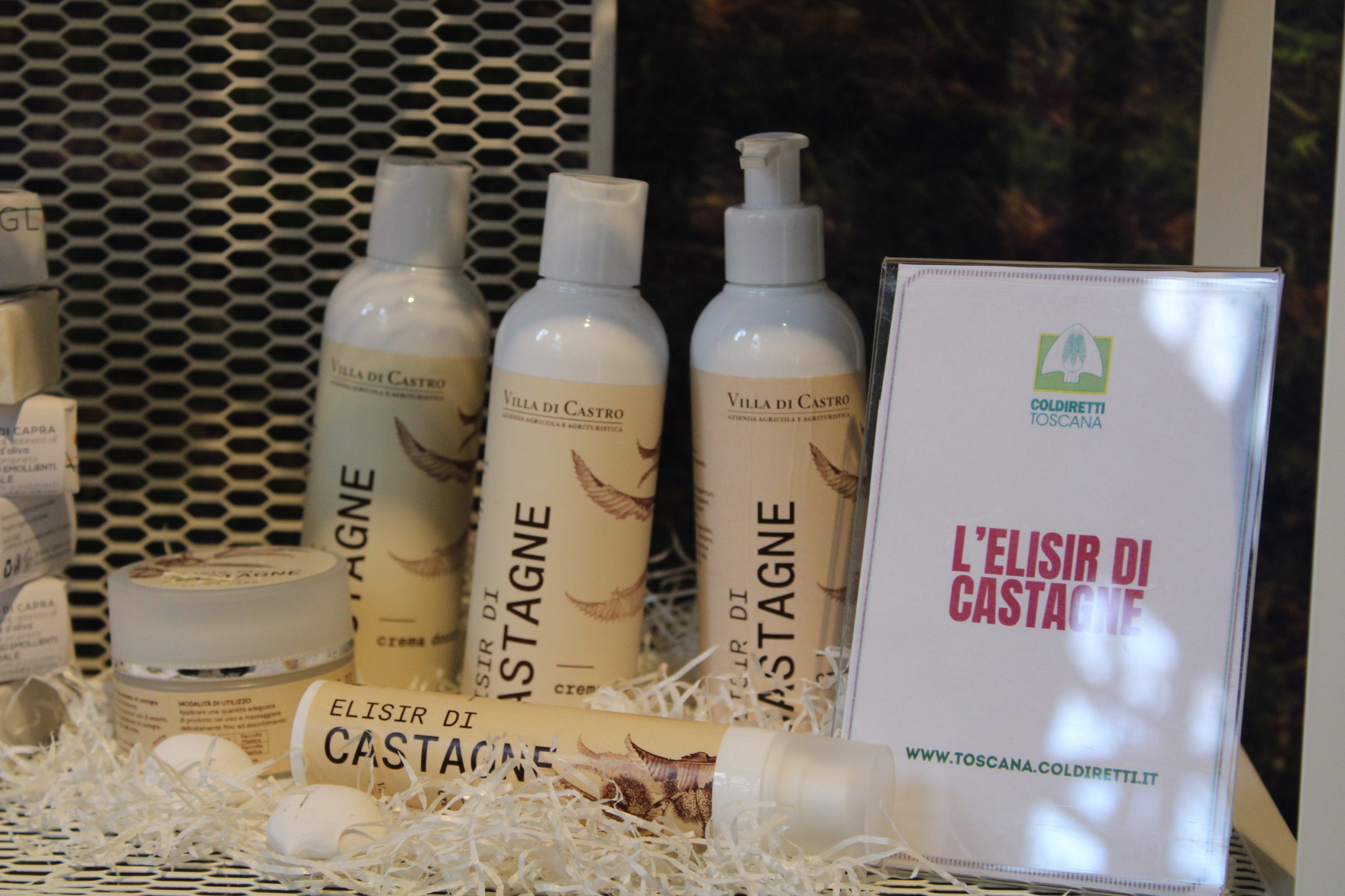L’elisir di castagne. Dall’albero del pane che ha permesso a generazioni di sopravvivere a fame, povertà e guerre alle creme per la bellezza. E’ la linfa del Marrone Caprese Michelangelo IGP il segreto della linea “Dal riccio al capriccio”. Sono state le difficoltà del periodo Covid a spingere Villa di Castro, piccola azienda di Caprese Michelangelo (Arezzo), a cercare nuove strade per superare lo tsunami della pandemia. Ed ecco, quindi, che prende vita una linea di prodotti cosmetici (crema mani, viso e corpo doccia crema e shampoo) a base di castagne, che contengono una sorprendete percentuale di vitamina C, con proprietà emollienti ed antiinfiammatorie, che aiutano a migliorare l'idratazione e favorire la tonificazione della pelle. Le proprietà vengono estratte dalla castagne di seconda scelta, in una logica di economia circolare, che mescolate insieme ad argilla ed altri prodotti naturali, a seconda del prodotto, aiutano giornalmente la pelle ad essere più vigorosa e lucente. L’idea “Dal Riccio al Capriccio”, quindi, gli ha permesso di vincere l’Oscar Green Toscana per l'anno 2022.