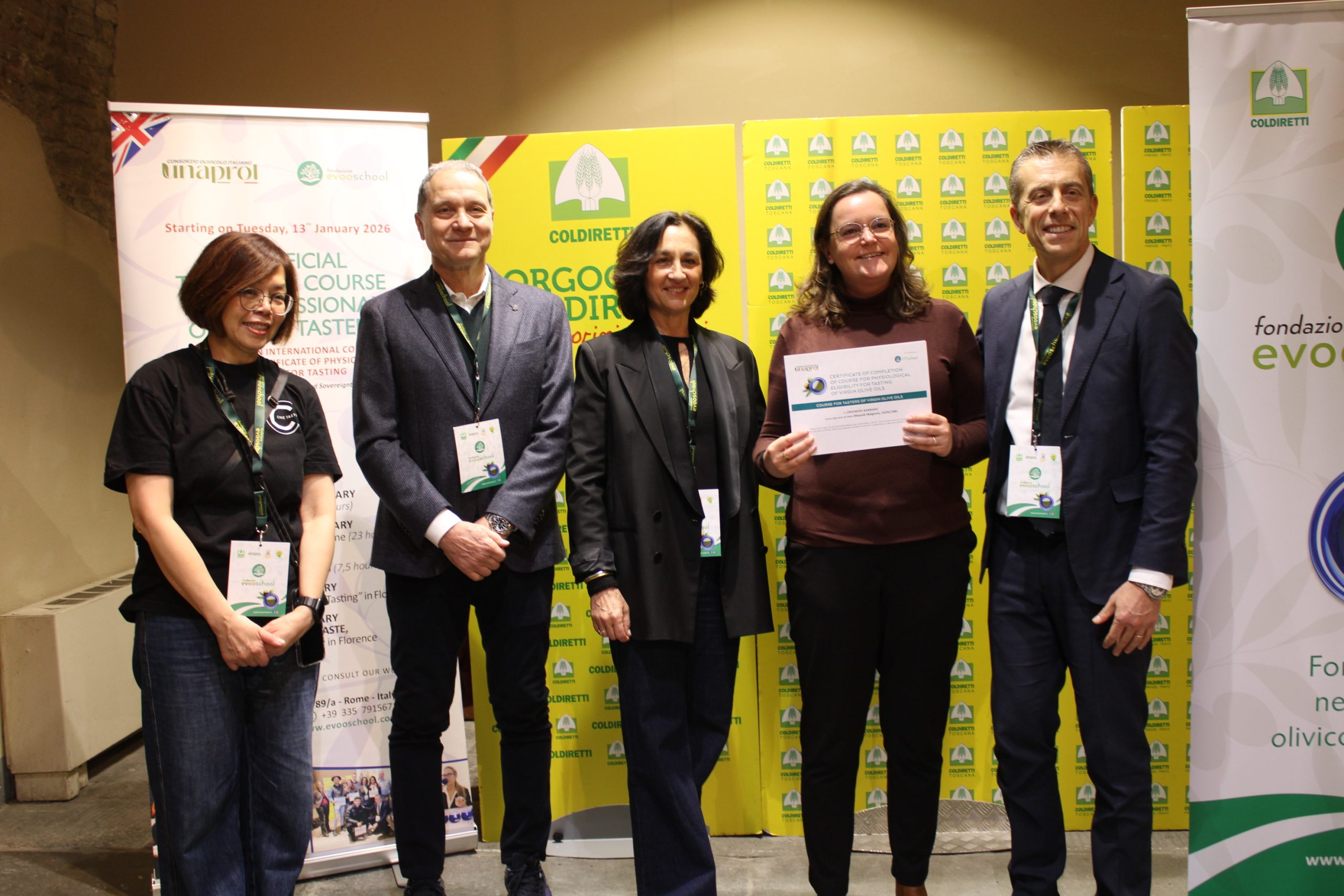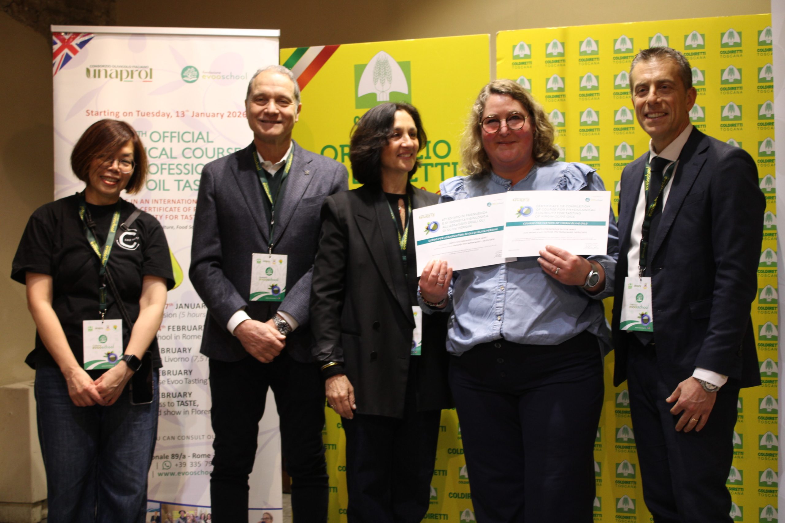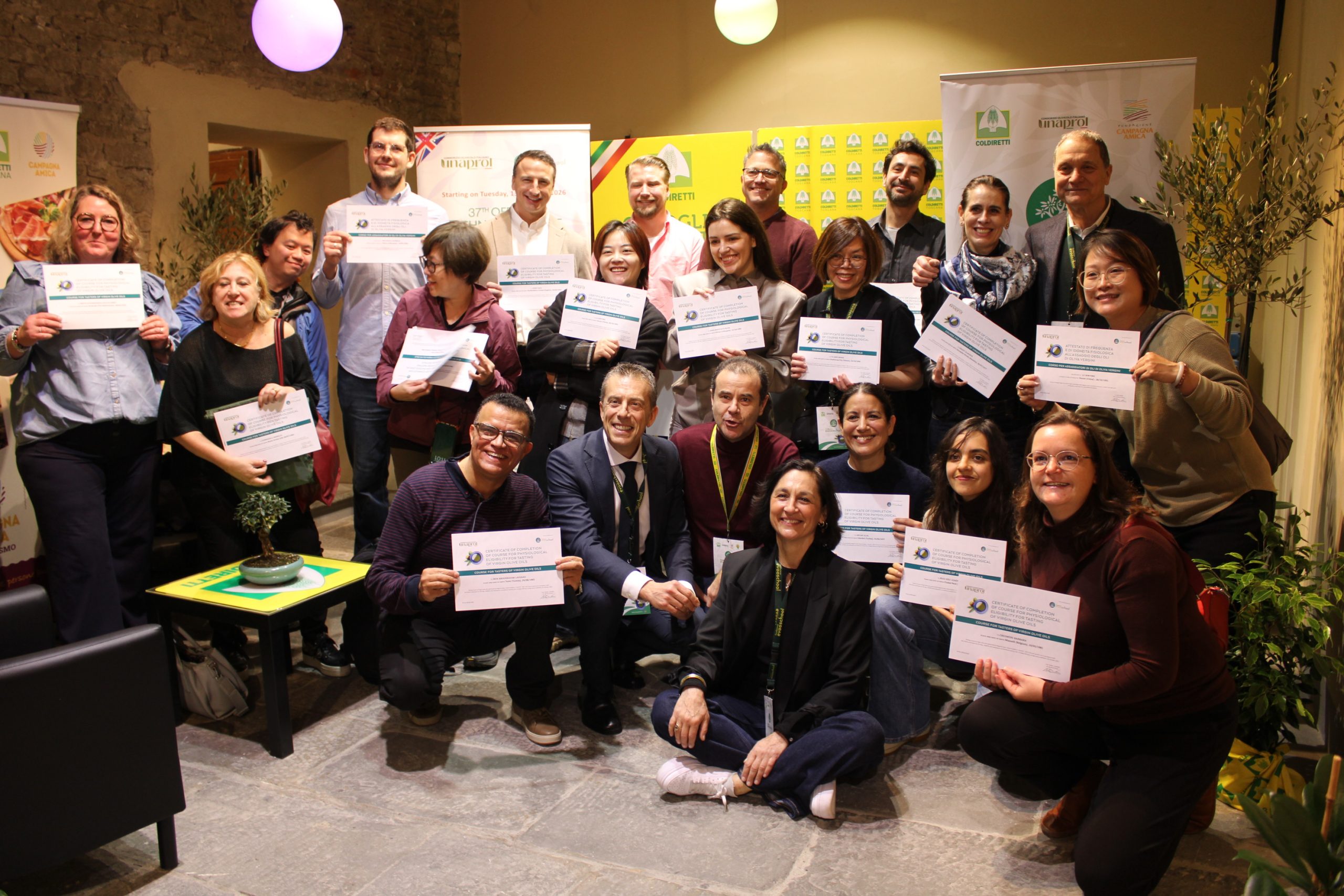 Sono 18 i buyer, arrivati anche dalla lontana Taiwan, Cina, Stati Uniti, Nord Europa, Turchia e da alcuni Paesi del Mediterraneo, come la Libia, che hanno concluso brillantemente il percorso e si sono “laureati” assaggiatori di oli di oliva vergini. L’attestato di idoneità fisiologica è stato consegnato dal direttore di Unaprol, Nicola Di Noia.