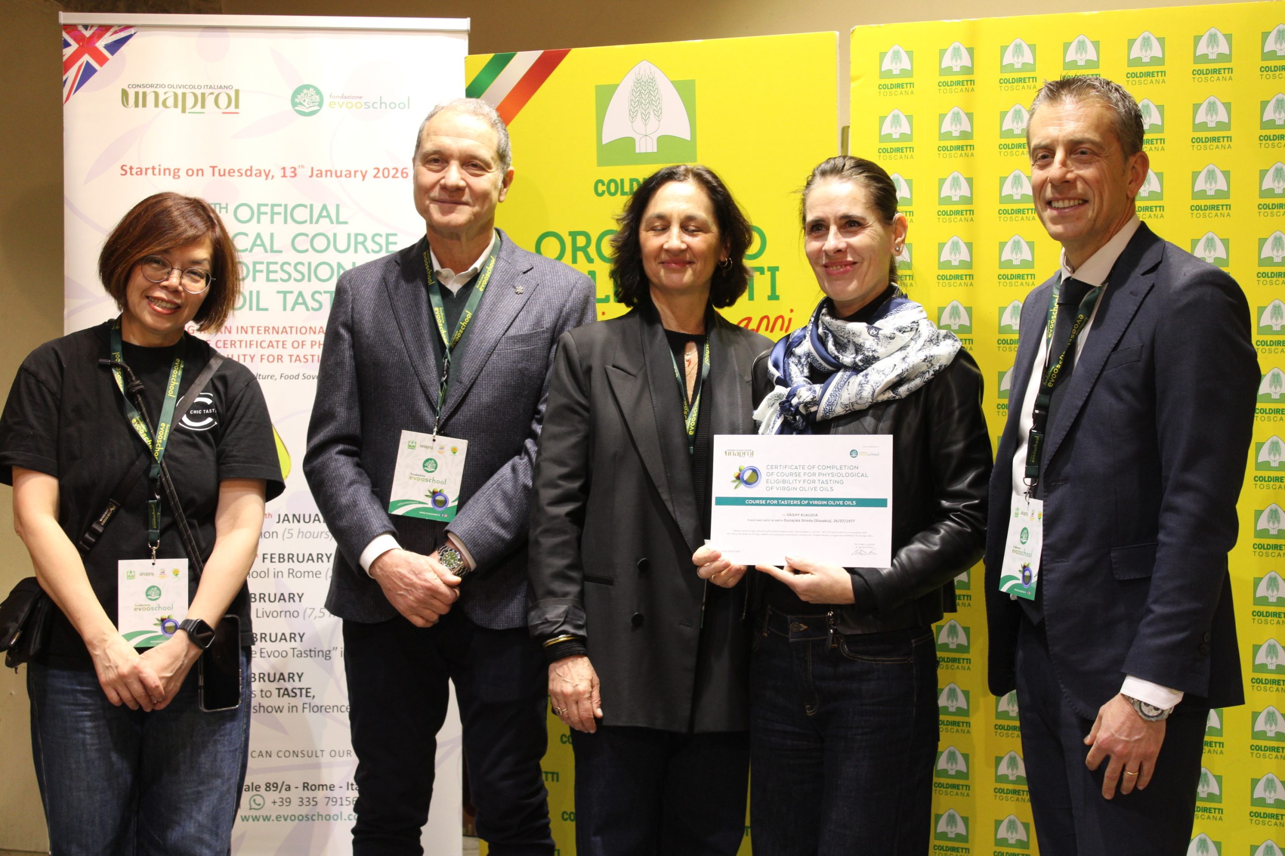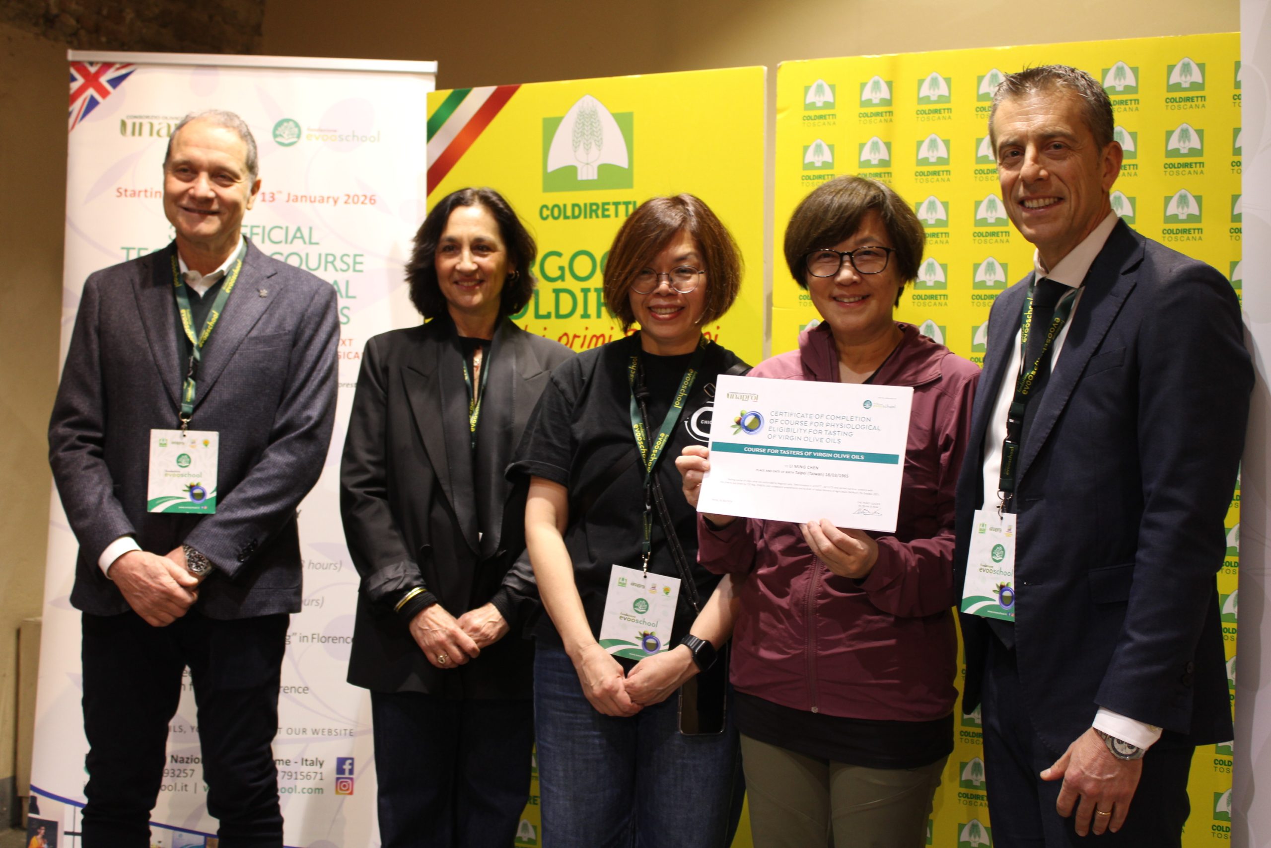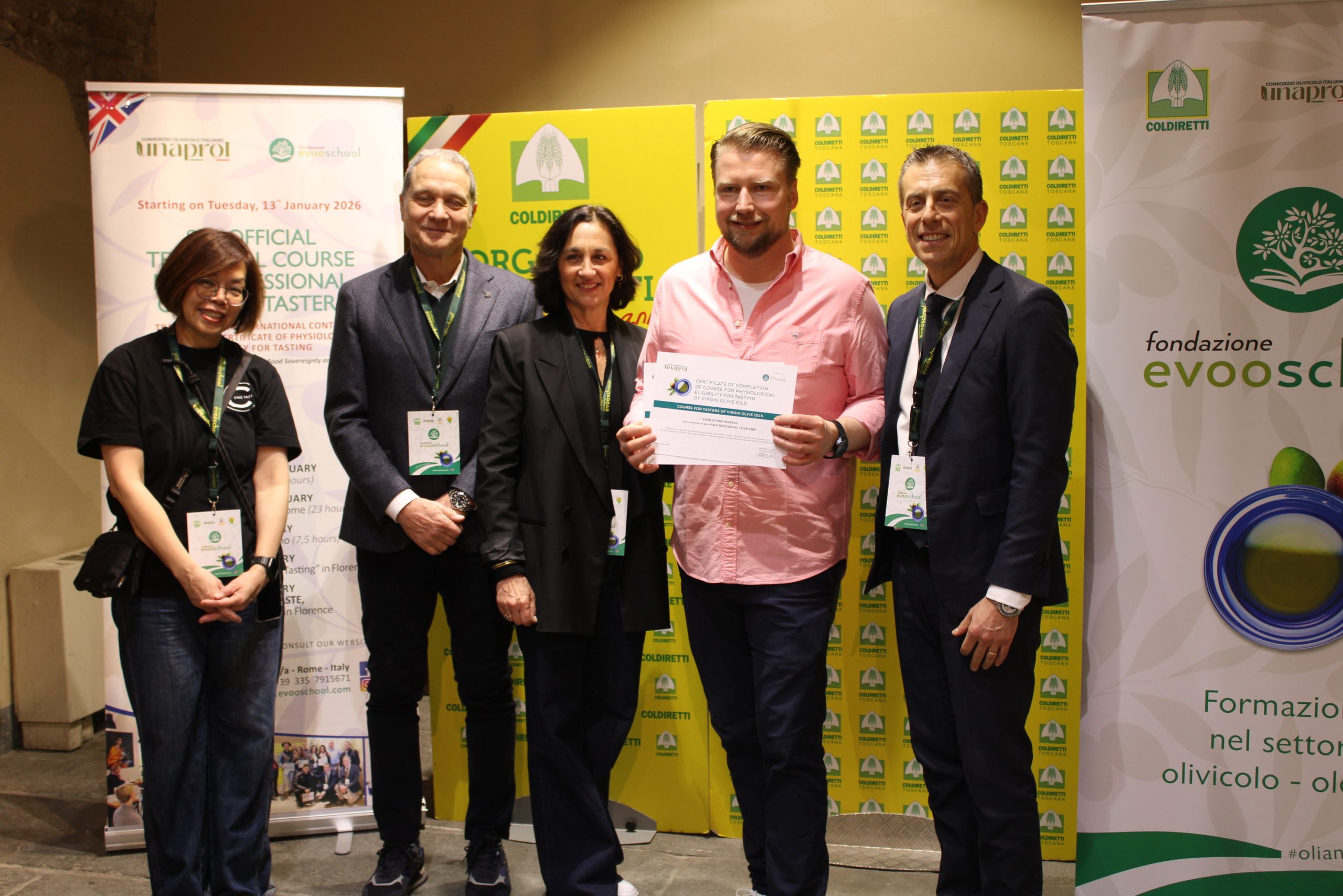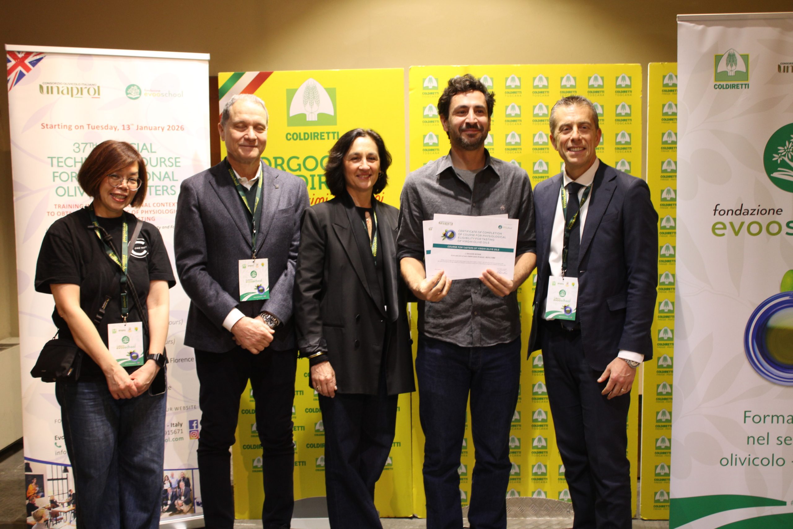 Sono 18 i buyer, arrivati anche dalla lontana Taiwan, Cina, Stati Uniti, Nord Europa, Turchia e da alcuni Paesi del Mediterraneo, come la Libia, che hanno concluso brillantemente il percorso e si sono “laureati” assaggiatori di oli di oliva vergini. L’attestato di idoneità fisiologica è stato consegnato dal direttore di Unaprol, Nicola Di Noia.