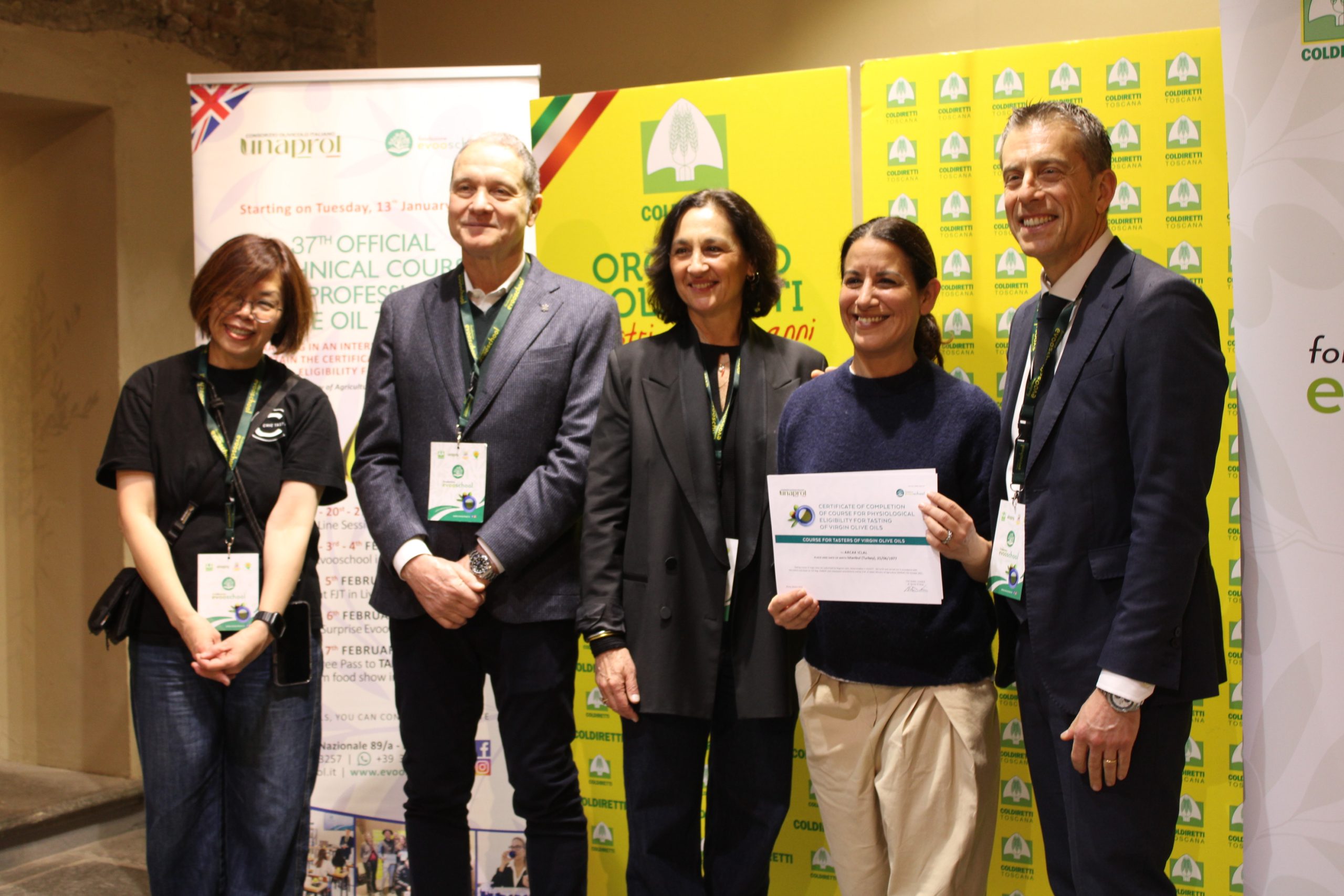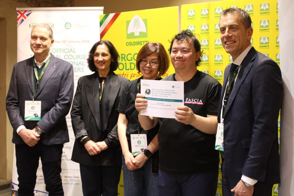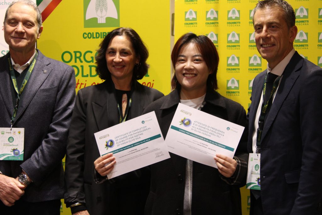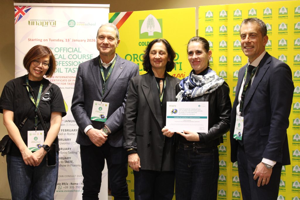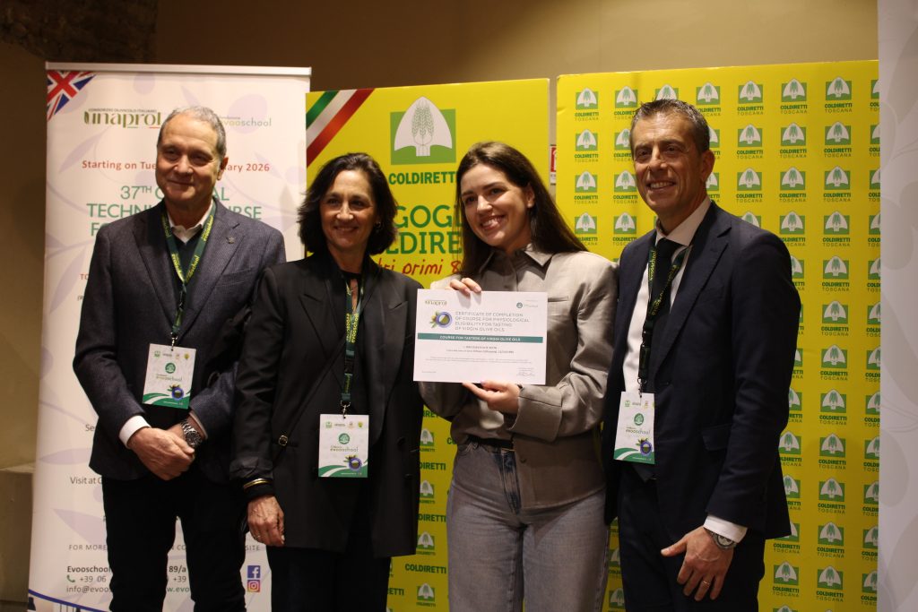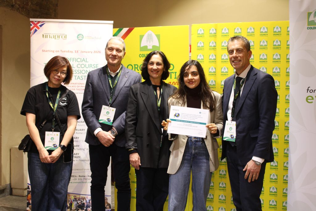 La cultura dell’origine per difendere il Made in Italy agroalimentare dalla concorrenza sleale e dall’italian sounding, che per il solo olio toscano vale nel mondo oltre 2 miliardi di euro. Conoscere, informare, educare per scegliere cosa mettere nel piatto: vale per i consumatori, di fronte agli scaffali reali e sempre più virtuali, ma vale ancora di più per chi il cibo – in questo caso l’olio extravergine di oliva – lo importa e lo commercializza nel mondo. È questa la leva del corso internazionale di olio della Evoschool di Unaprol, la scuola di Coldiretti, che si è chiuso con la consegna degli attestati a Taste, il salone del cibo di Firenze che si è aperto oggi, venerdì 7 febbraio, alla Fortezza da Basso.